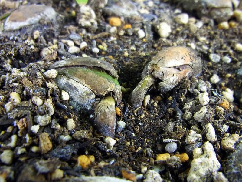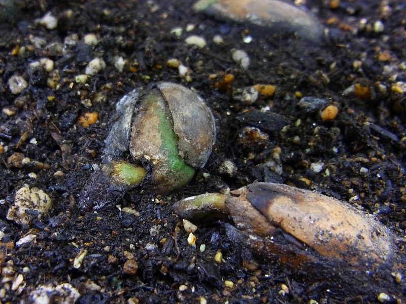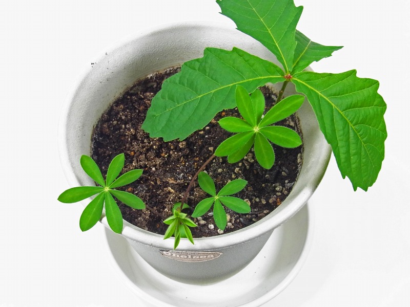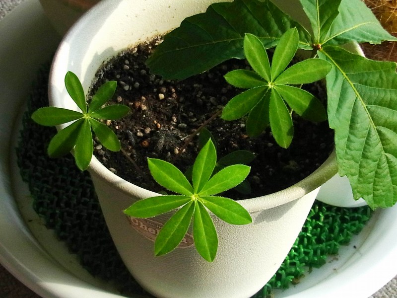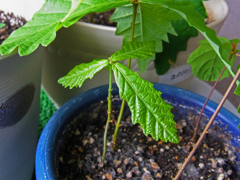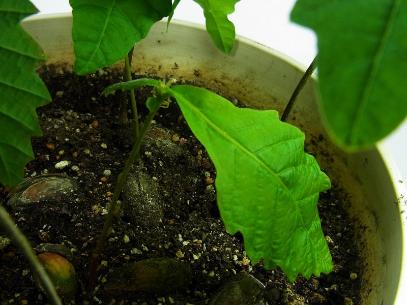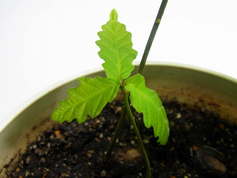 最後に発芽したドングリは順調に育っていますが、まだ2枚葉の状態です。