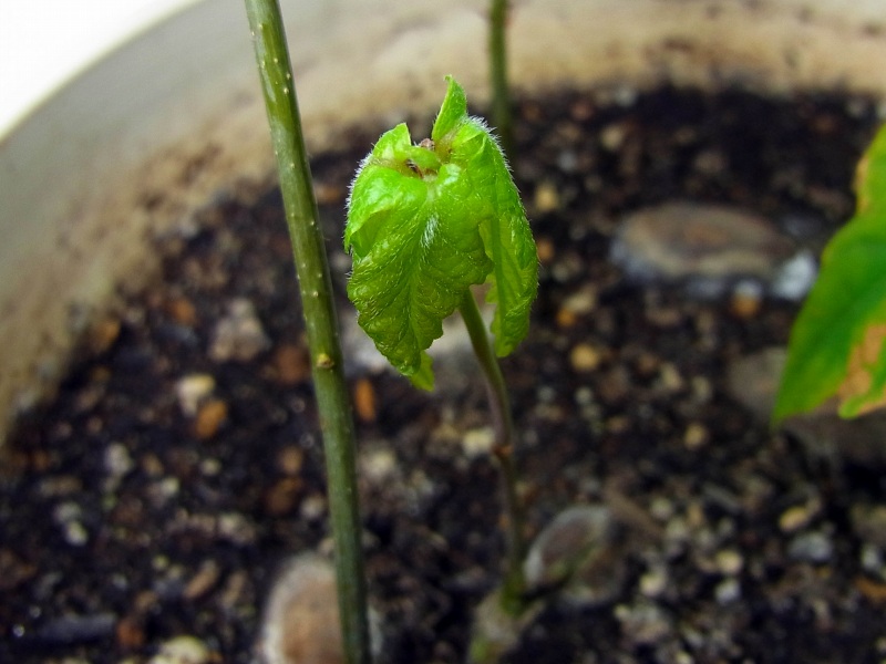 最後に発芽したドングリは、6個目の葉を拡げ始めました。