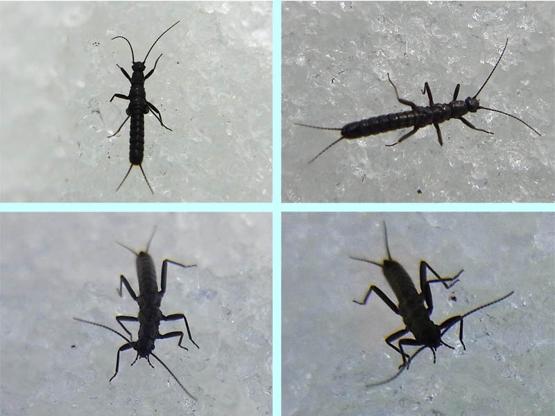 この昆虫は、カメラを近づけると雪の中に逃げ込みます。