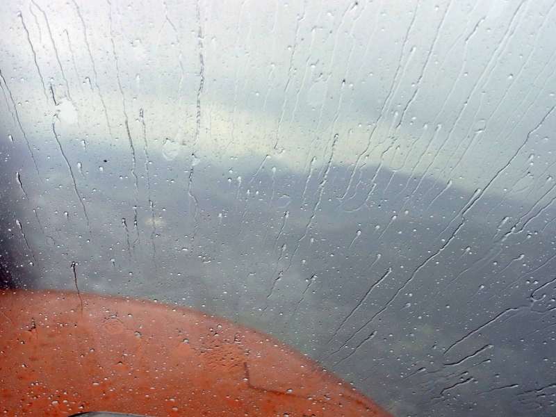 小型機で雨中飛行をしたときの写真です