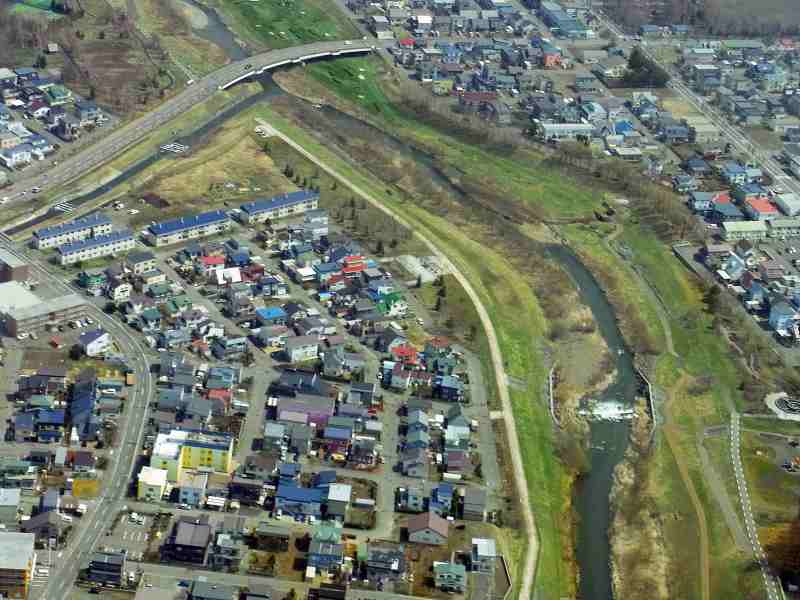 前方に丘珠空港が見えます。