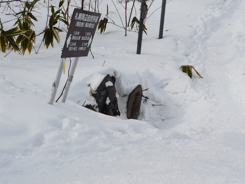 予想外のラッセルで時間が掛かったうえ、足も大分疲労していたので、藻岩山には登らずに慈恵会病院経由で駐車場に戻りました。
