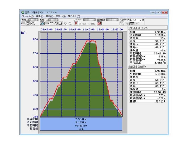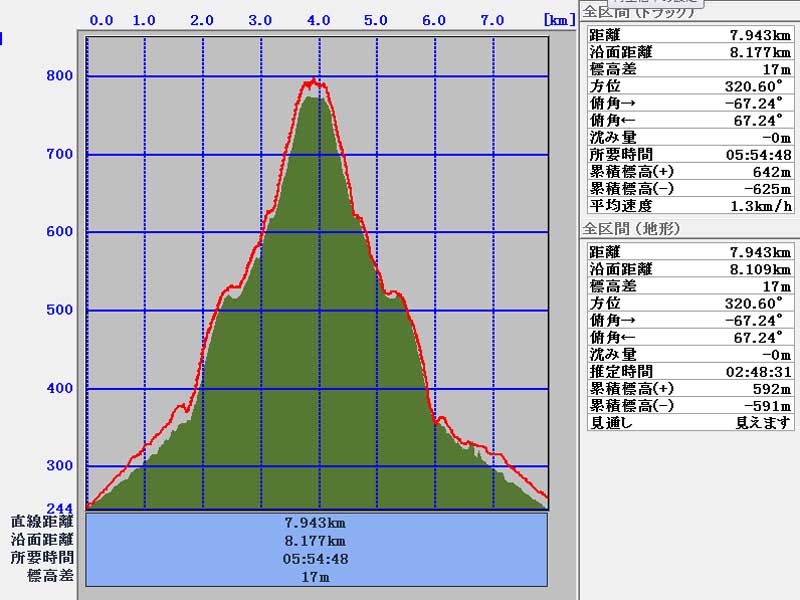 総上昇量   444m