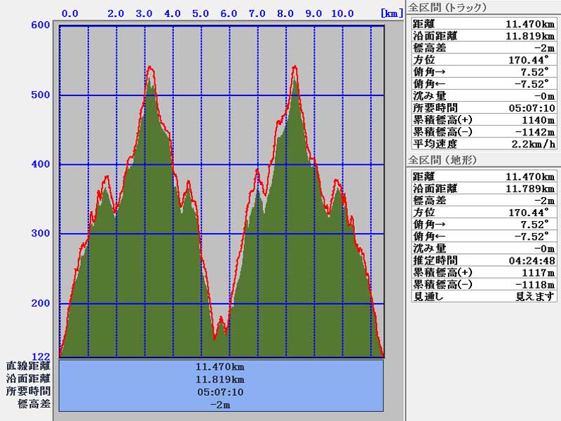 累積標高(+)地形    611m