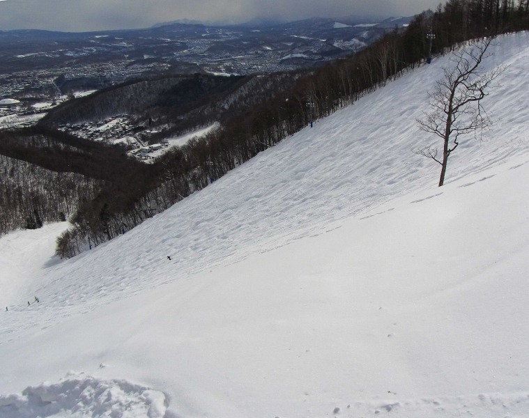 復路では、この急斜面を直線で下ってきました。