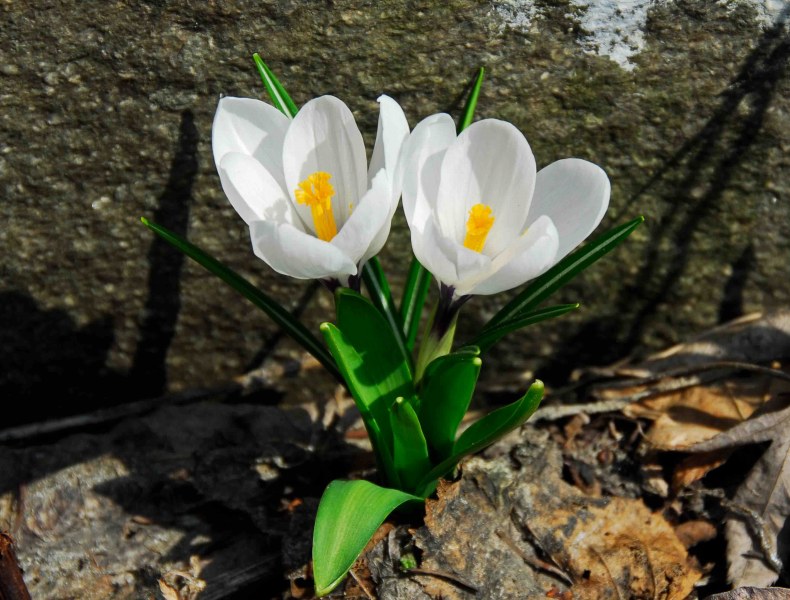 近所のお宅の庭では、クロッカスが綺麗に咲いています。