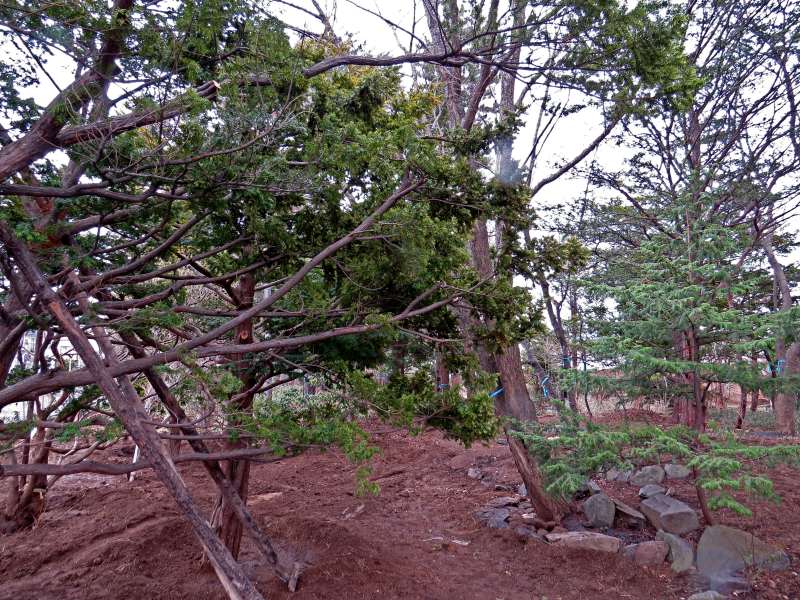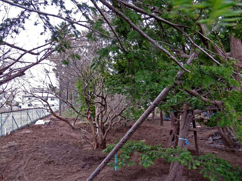 舗装道路の終端に民家が2軒あり、その付近が駐車スペースになっていましたが、この民家2軒は取り壊されて、跡地は整地されていました。