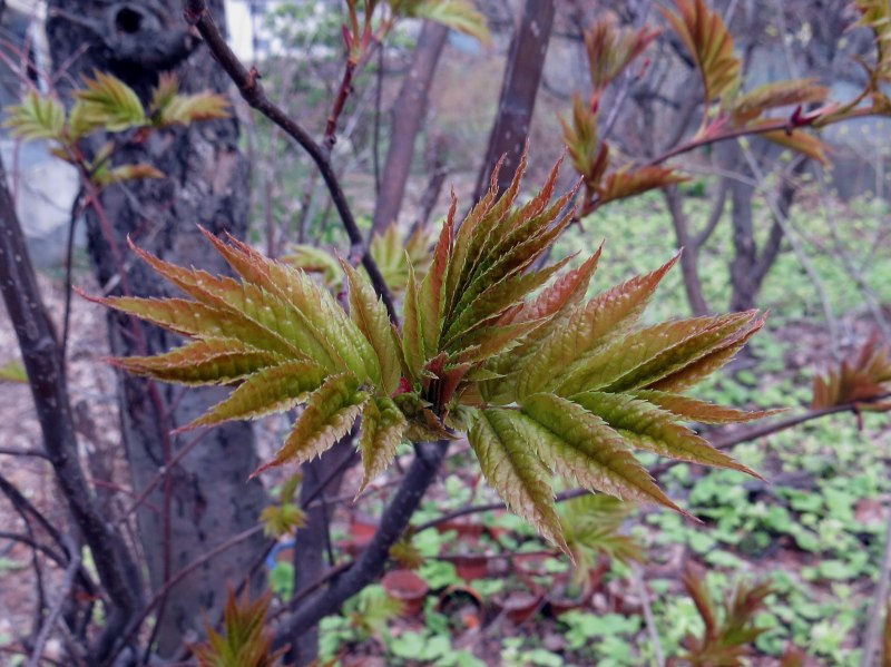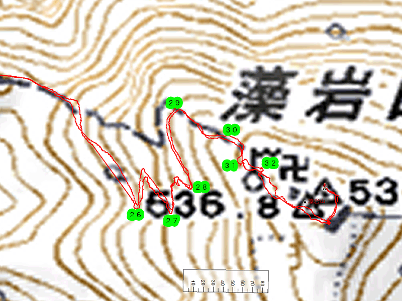 自宅で、その付近を撮影した写真を調べたら、登山道の入口そばにある木の上の方に、少量のピンクテープが残っていました。