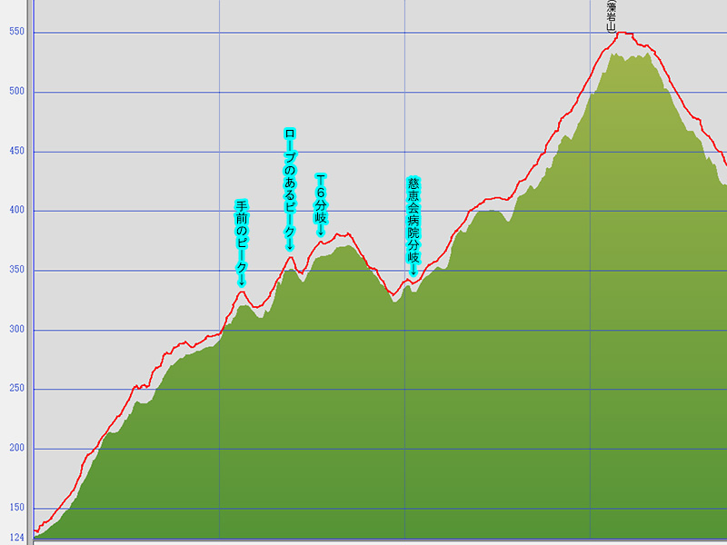 山頂発      10時02分 (0時間15分) (0時間15分)