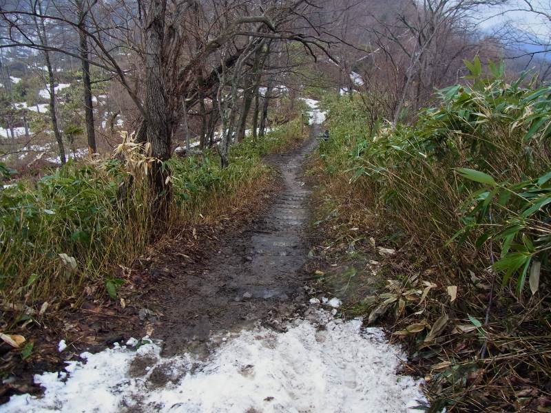 ただ、標高が800mを超えるので、例年日陰部分の登山道には雪が残っているので、今年も多少の積雪があることは考慮していました。