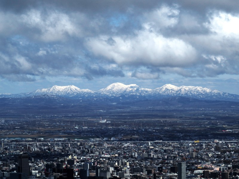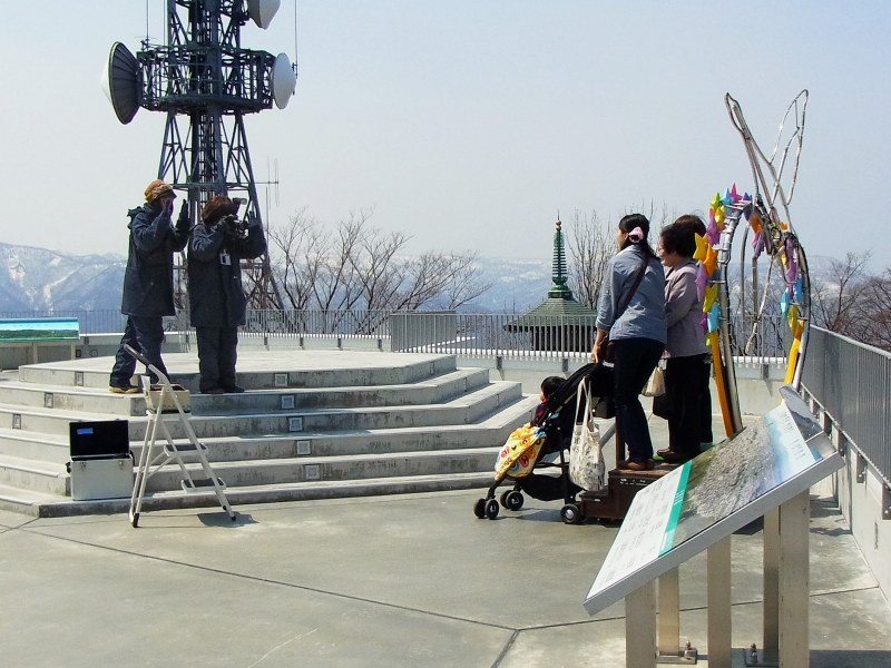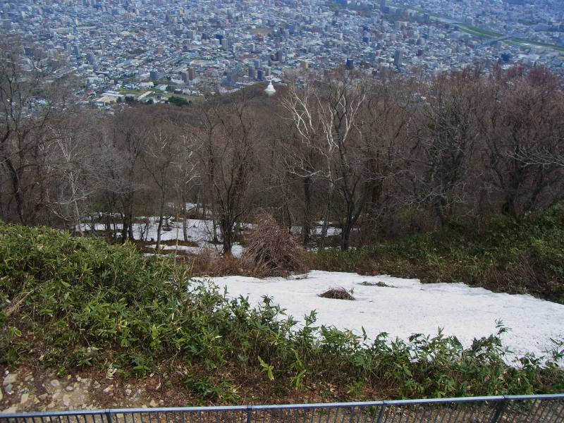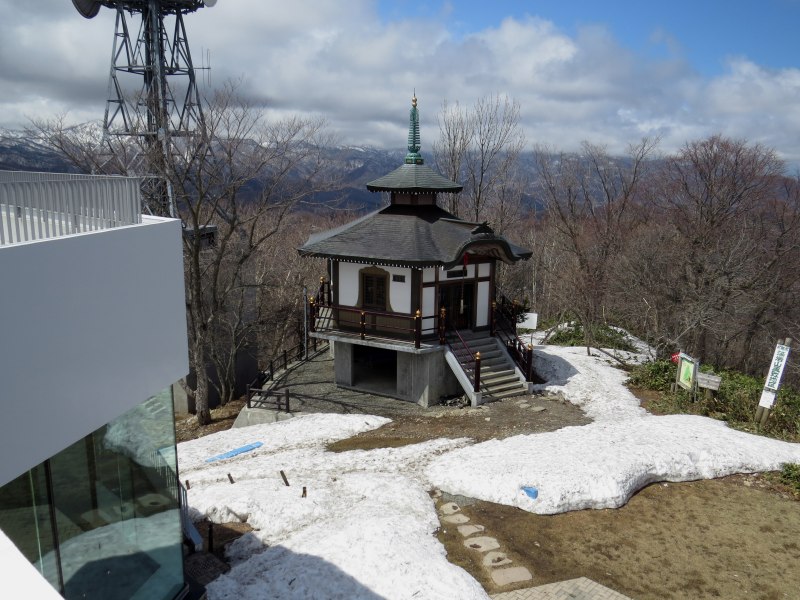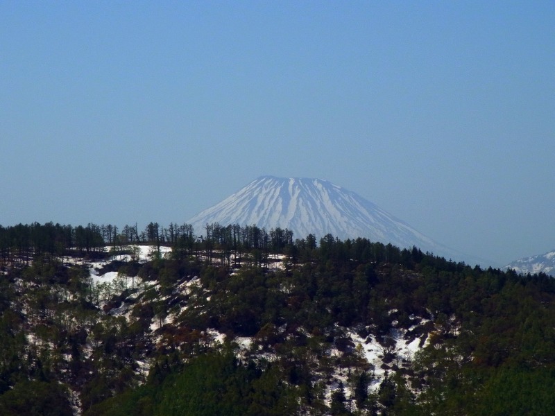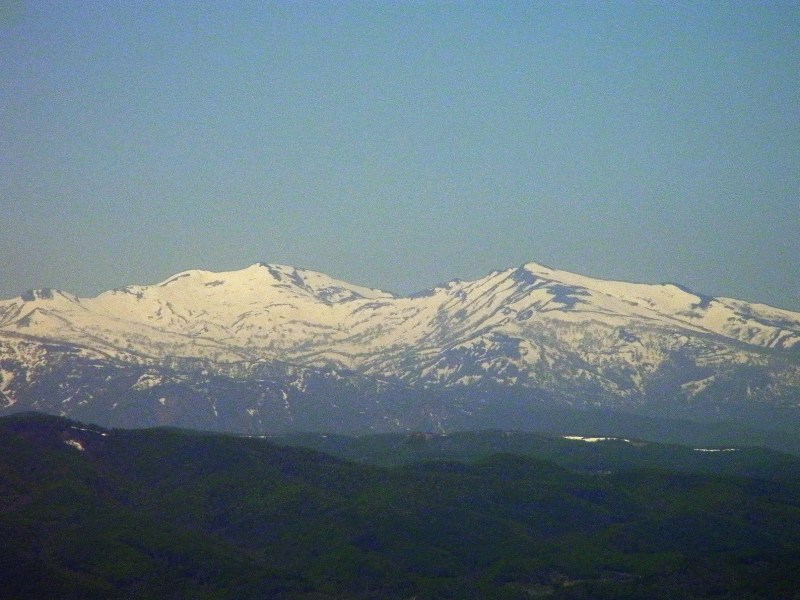 山頂から遠方の山を見ると、まだたっぷり雪が残っていました。