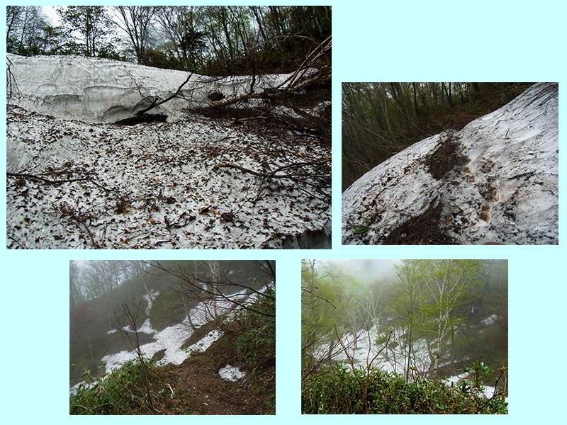 雪の減り方が早いため、前日の踏み跡が完全に消えており、前方を見ても登山道らしきものやピンクテープが無いため、歩いていても少し不安でした。