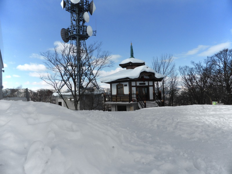 手稲山山頂は雪が多く、山頂の神社は雪の中でした。