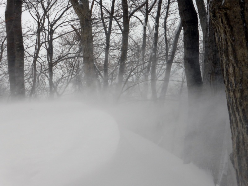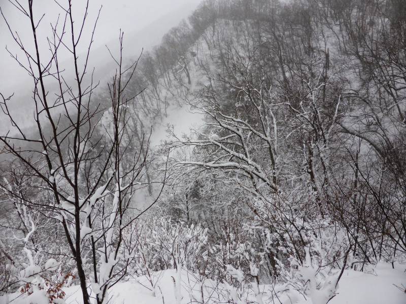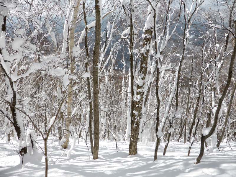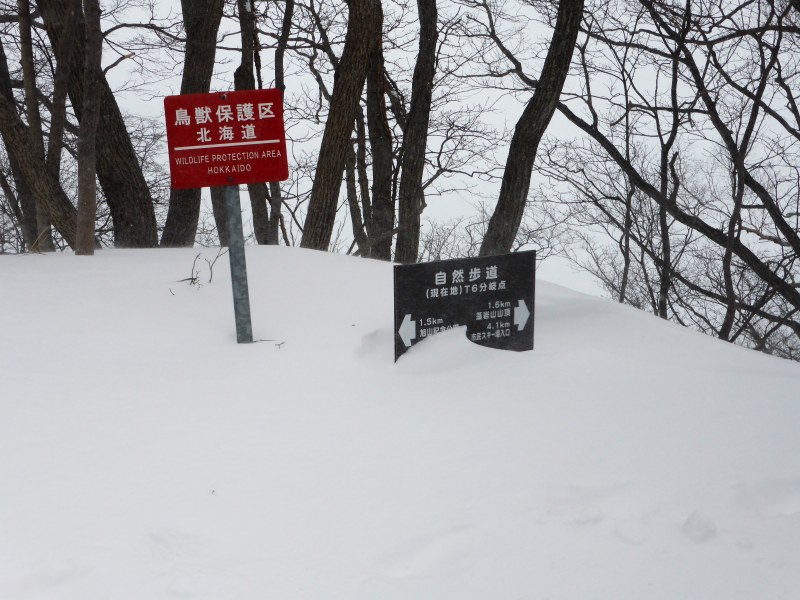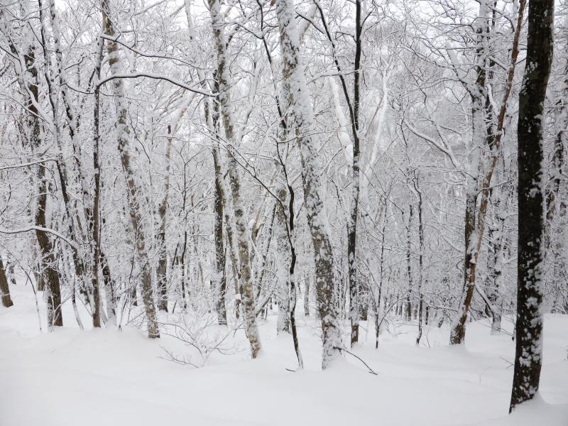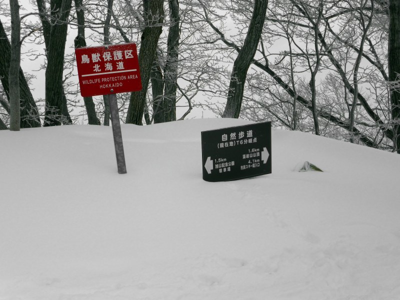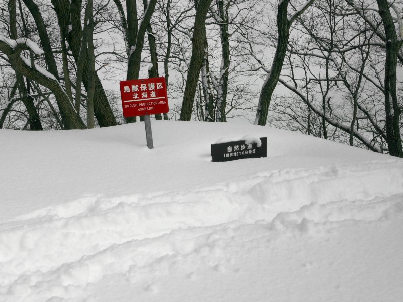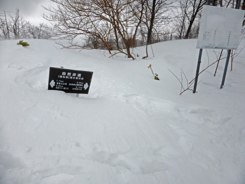 今日の登山道の状態は、暫く降雪が無かったようで、冬道の急登部分とガレ場では、スノーシューの踏み跡が広範囲に広がり、藻岩山についている様な凹型の踏み跡が全くない状態でした。