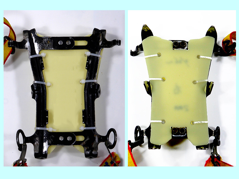 「スノープレート キット」が市販されていますが、10本爪アイゼン以上のセパレート式(前後に分かれたタイプ)用ですので、6本爪アイゼンには寸法が少し足りません。