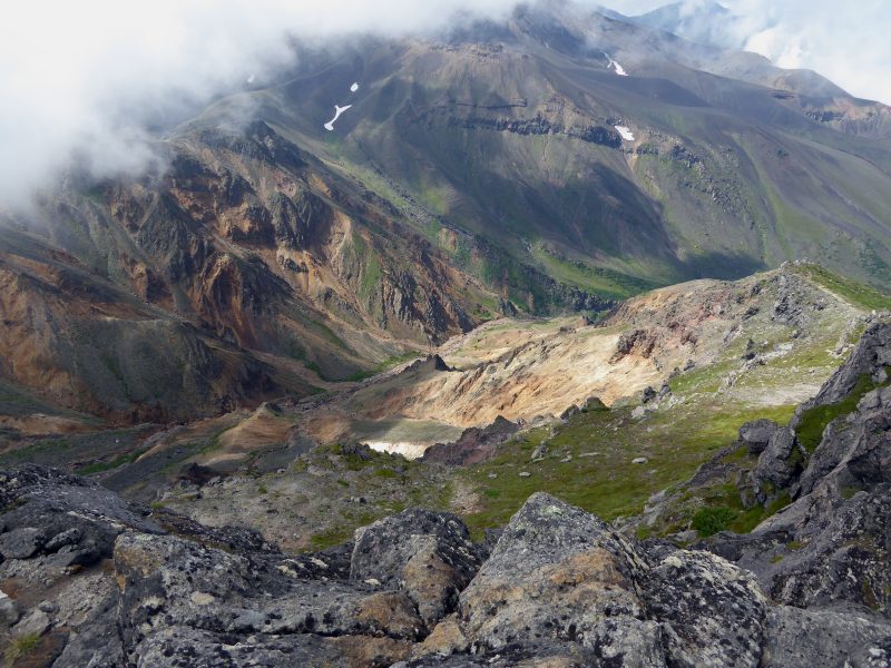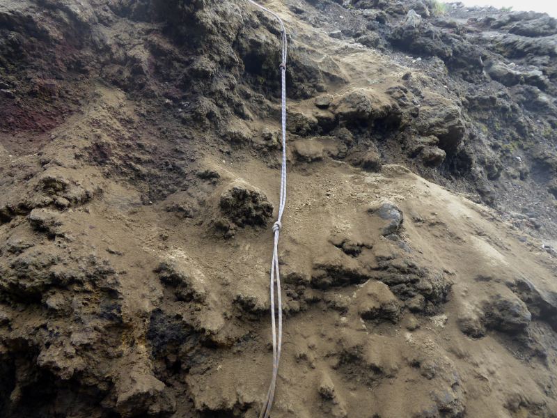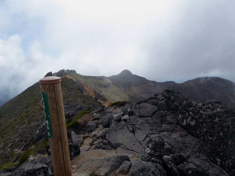 山頂付近は火口側から吹き上げる風が強烈で、携帯風速計で計測はしませんでしたが20m/sを超えていたと思われます。