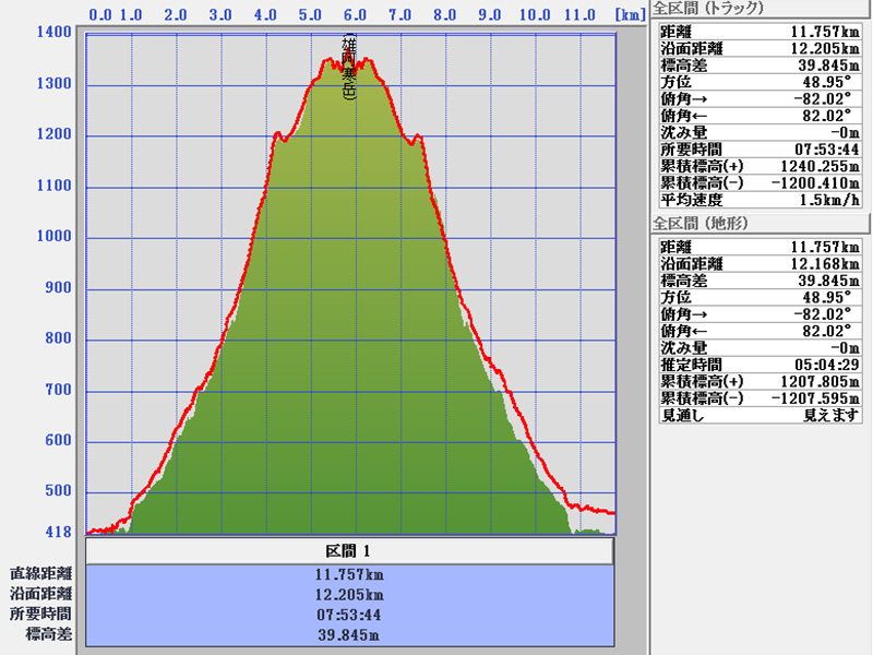 山頂着      09時45分 (1時間06分) (4時間21分)