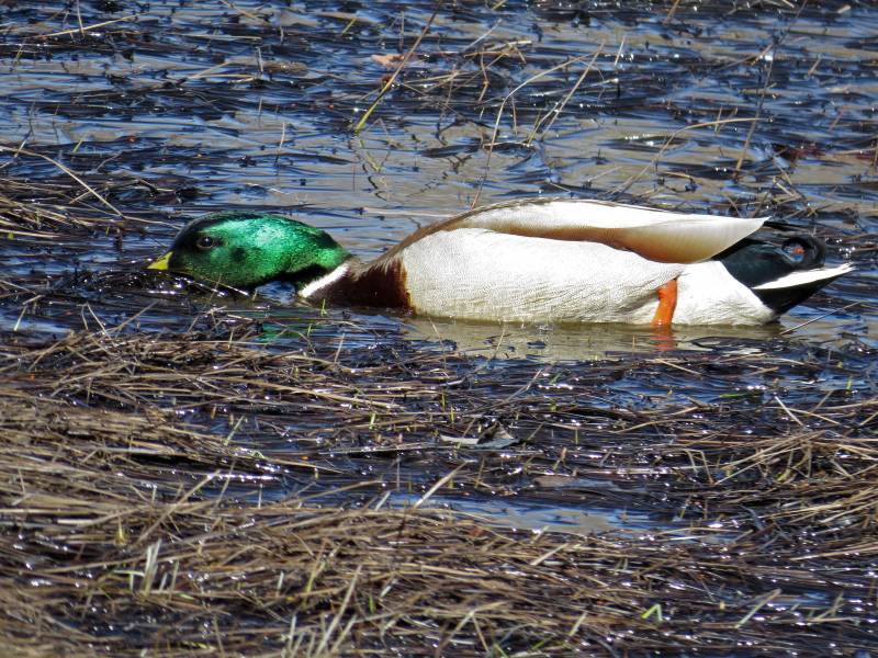 人工池にカイツブリが2羽遊びに来ていました。マガモは見かけませんでした。(写真4)