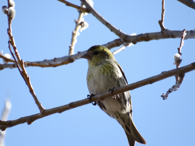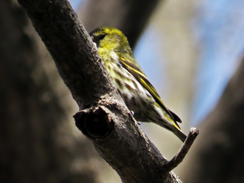 今日は晴天のうえ、マヒワの群れが背の高い木の上の方にとまったため、完全な逆光になり撮影に苦労しました。