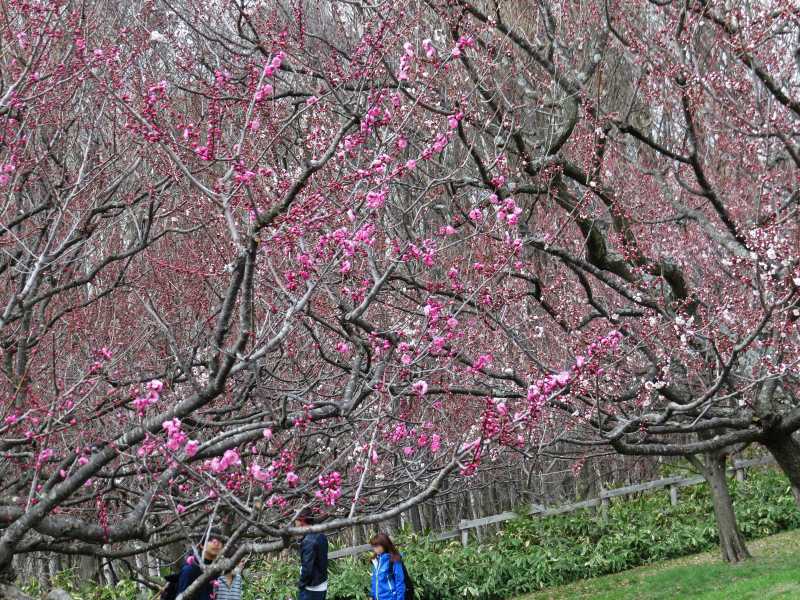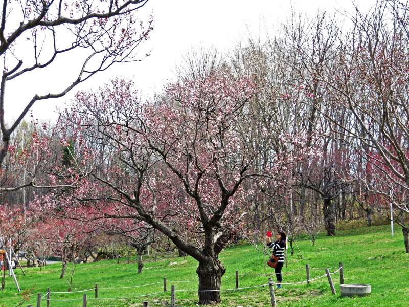 さすがに、降雨のために公園を訪れている人は疎らでしたが、梅林は雨に濡れてしっとりとして大変綺麗でした。