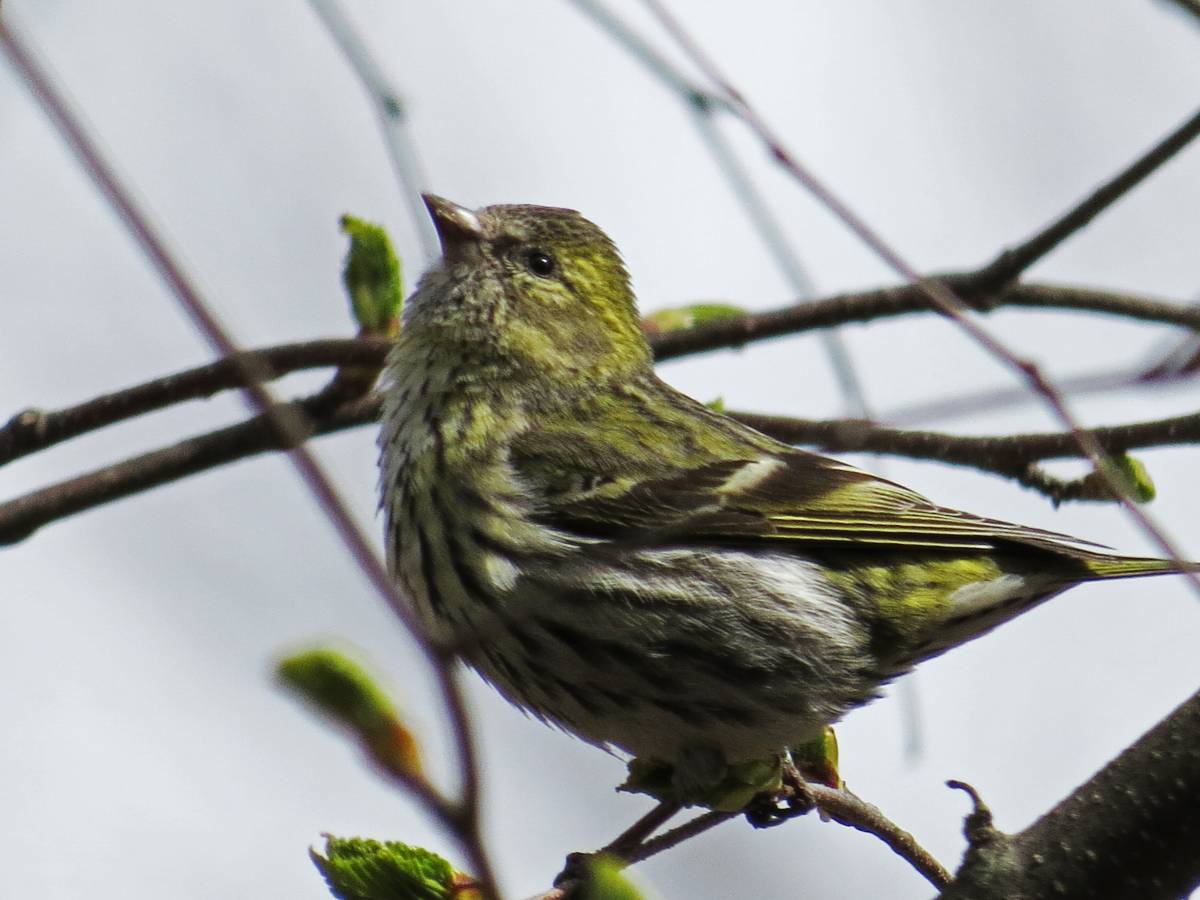 マヒワが数十羽の群れで移動していました。