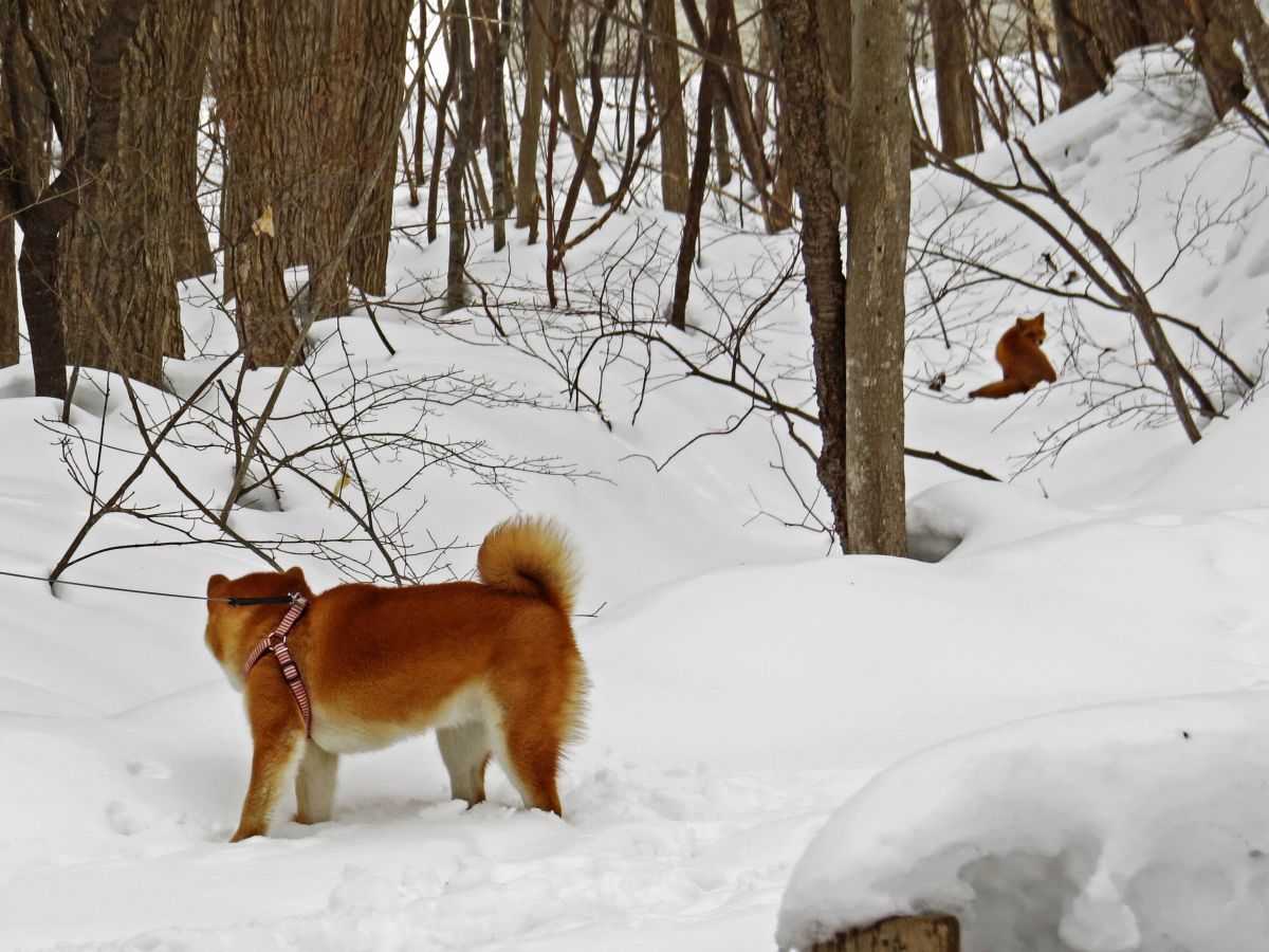 今日は、キタキツネを2匹見かけました。