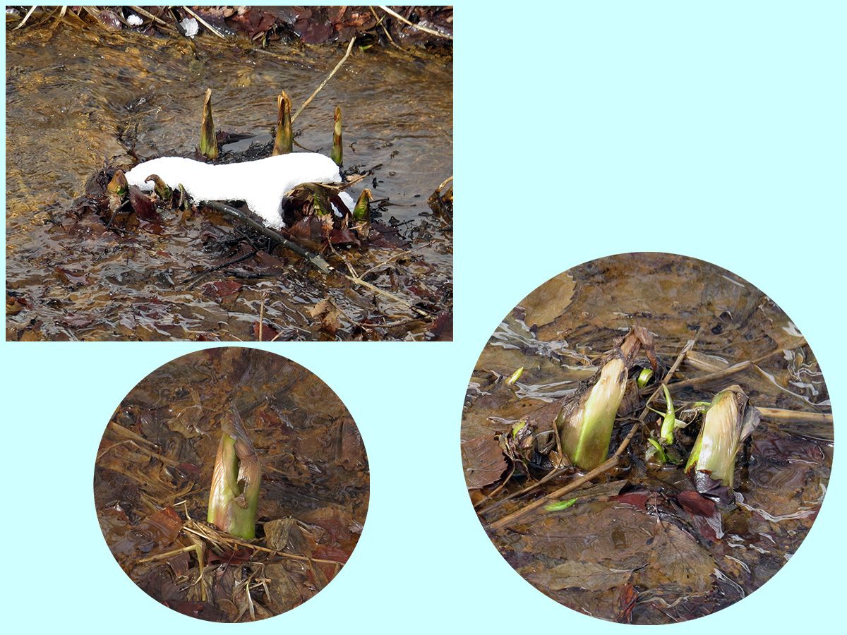 流水がある付近は、雪が消えて地面が出ています。