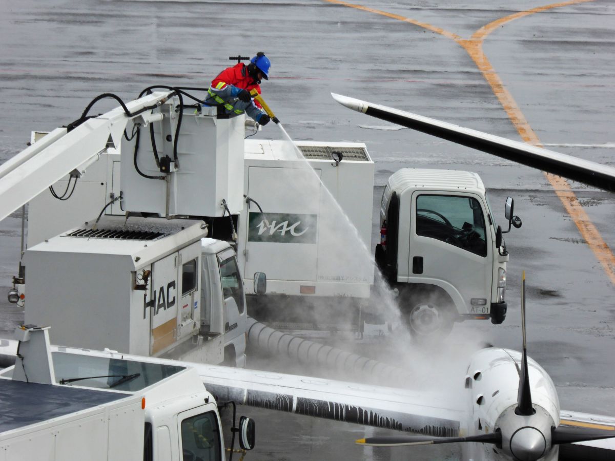 翼の上の除氷作業です。