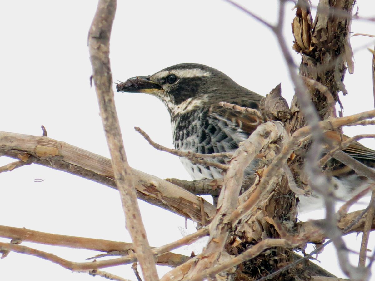 写真3,4のツグミは、この場所で昆虫を捕まえました。