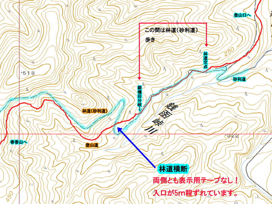 今年は、切り替えた2箇所(地図のGPS軌跡が、点線の旧登山道から上方に迂回している部分)は、ほぼ通常の登山道のイメージになりました。