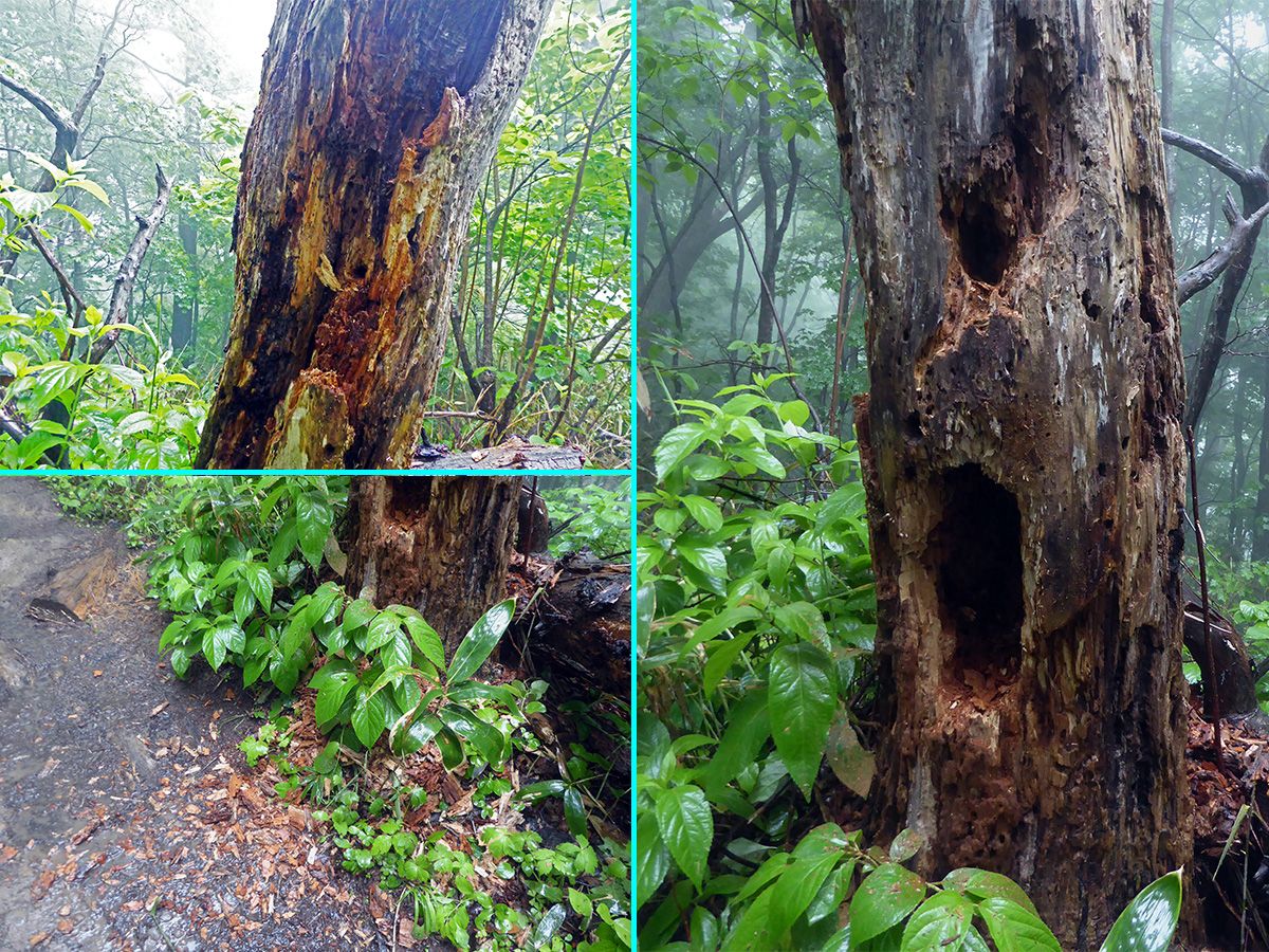 営巣中だったアカゲラの巣の場所に行ってみましたが、既に巣立ったようでした。
