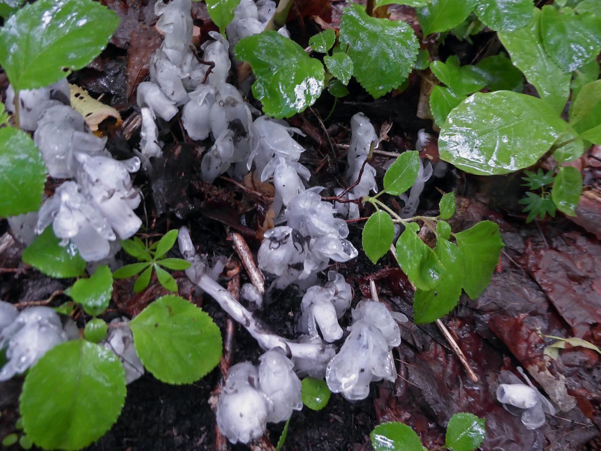 舗装は乾いていますが、登山道は濡れています。