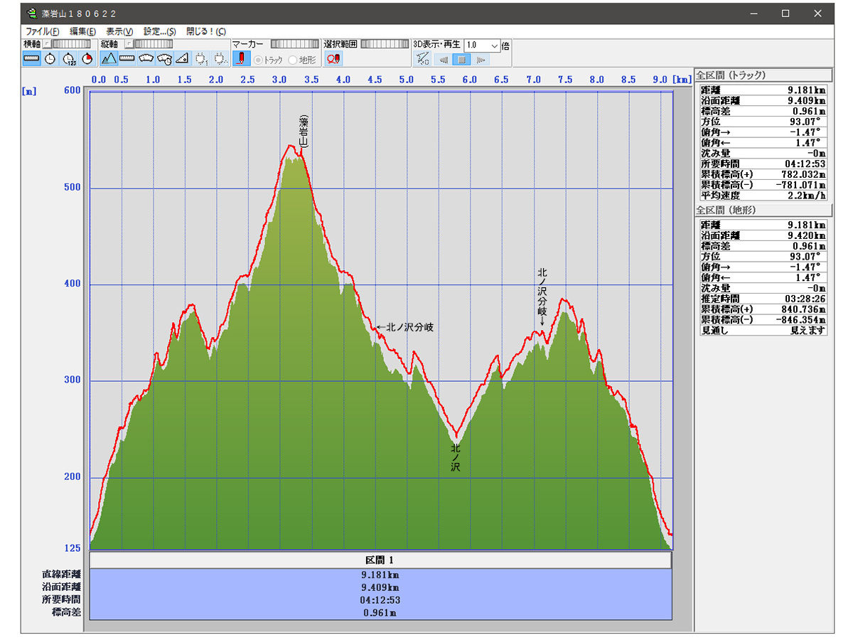 累積標高(+)地形   646m