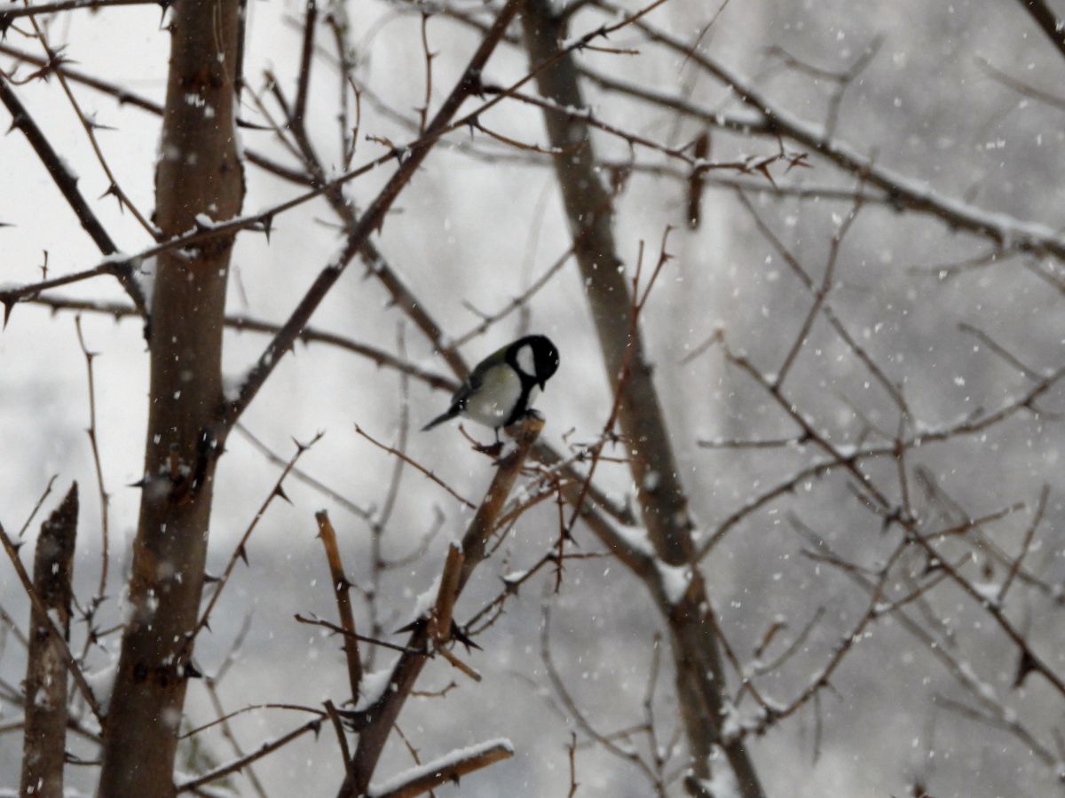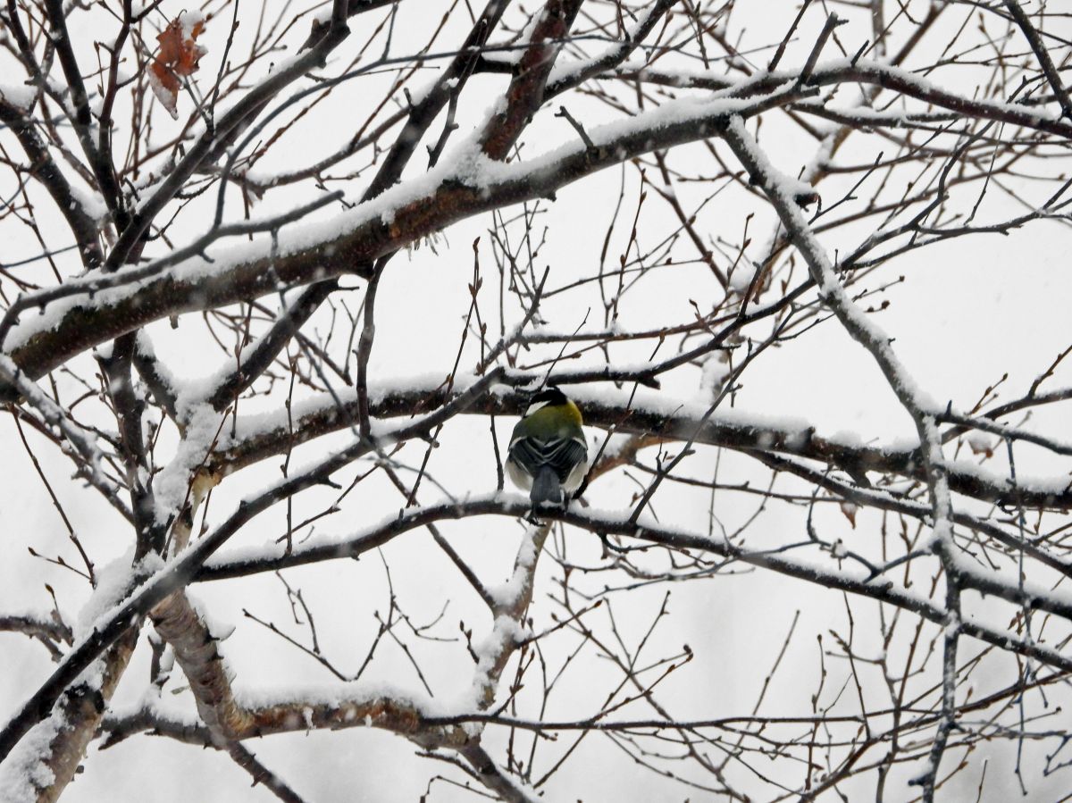 公園滞在中の90%ぐらいは雪が降っていたので、野鳥達も姿を現しませんでした。