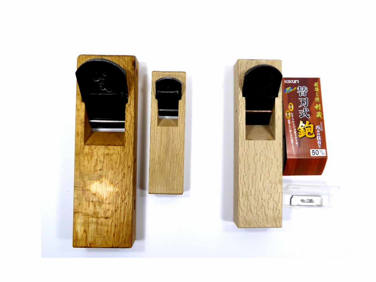 左側の2個のカンナは、昔から自宅にあったものですが、こちらは自分で刃を研いでいます。