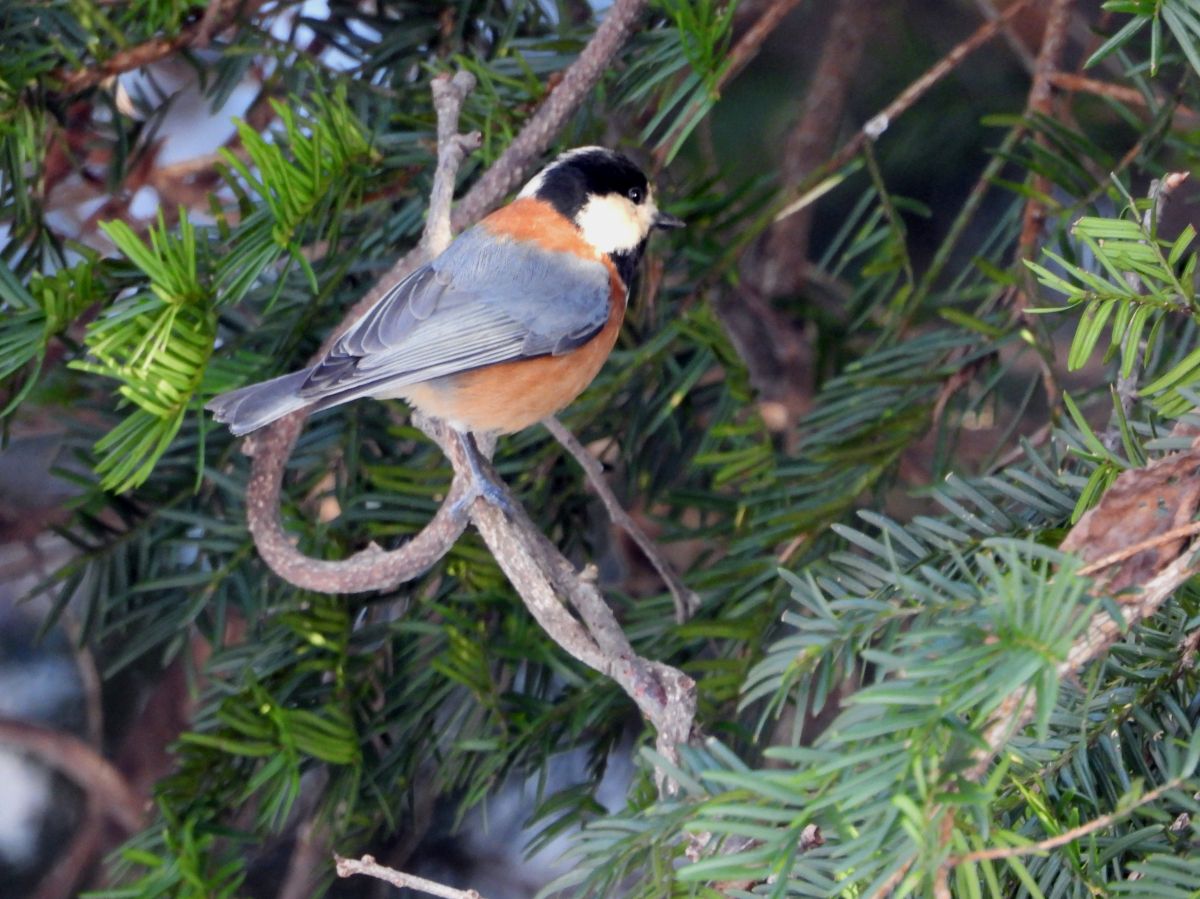 唯一、写真4の松の中の雪が降らない空間にカラ類2羽を見かけました。