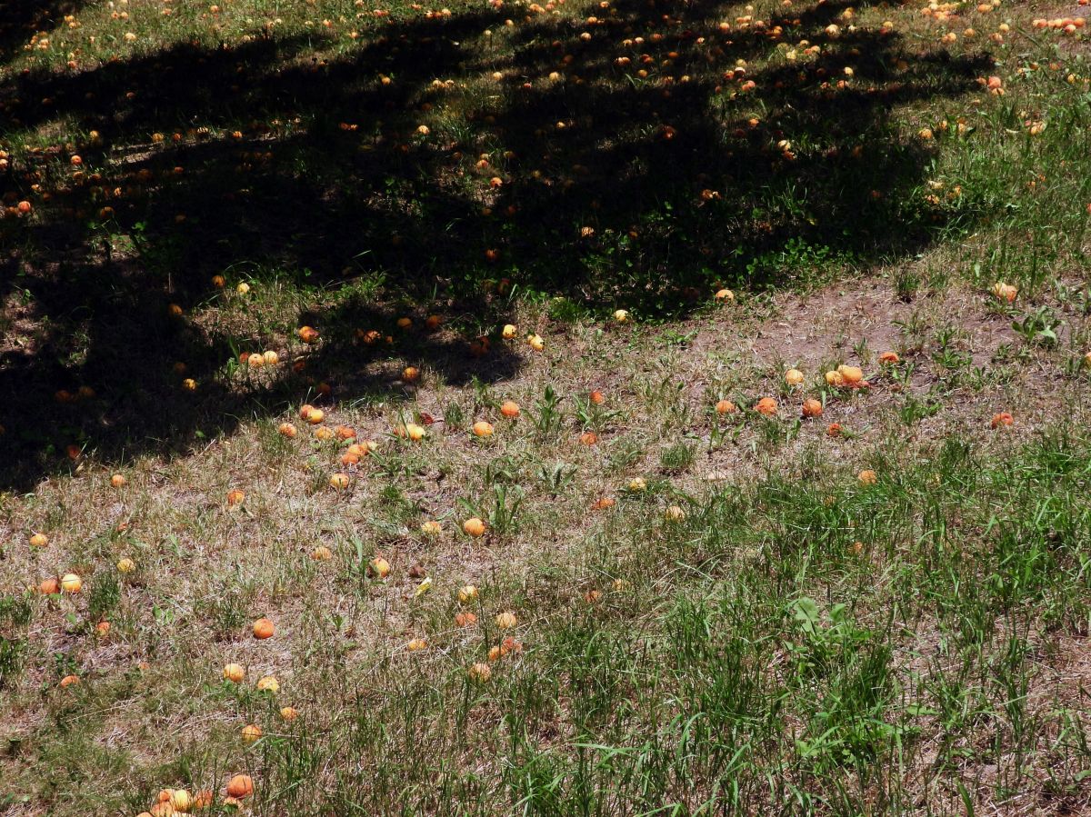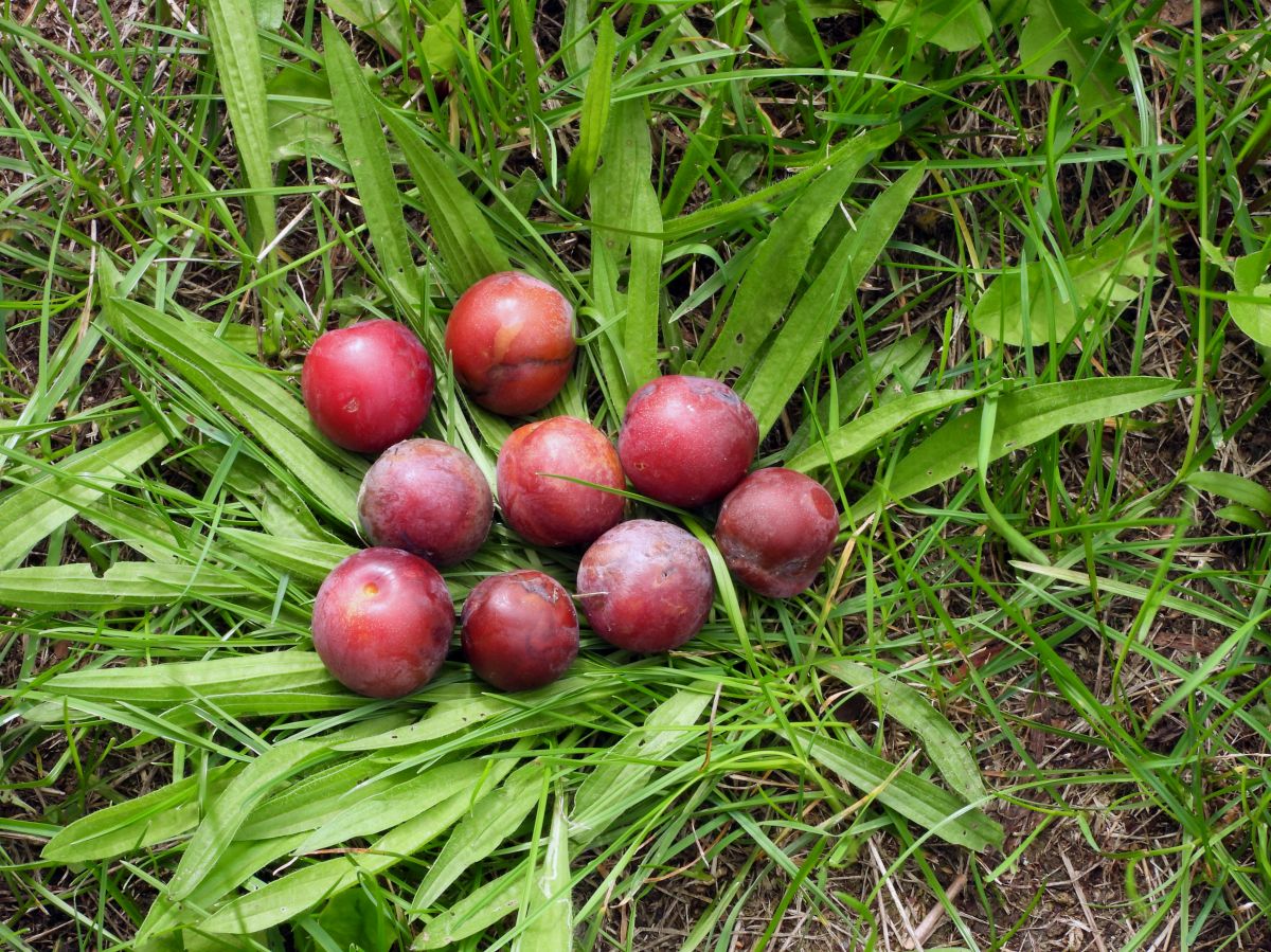 梅林では、スモモの実が熟して、自然落果をしています。(写真9)