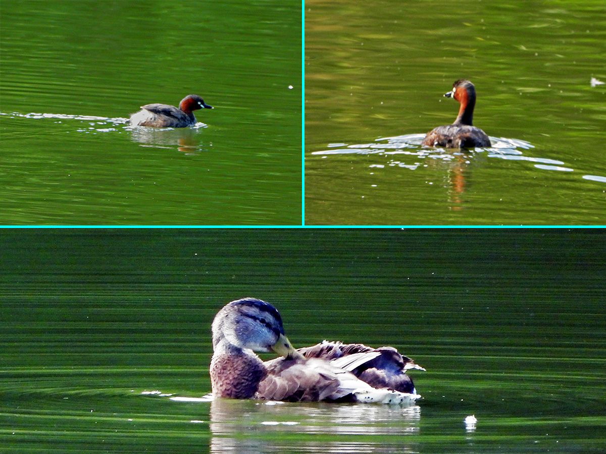 人工池に行くと、前回と同じくカイツブリともう1羽が見えました。(写真3〜6)