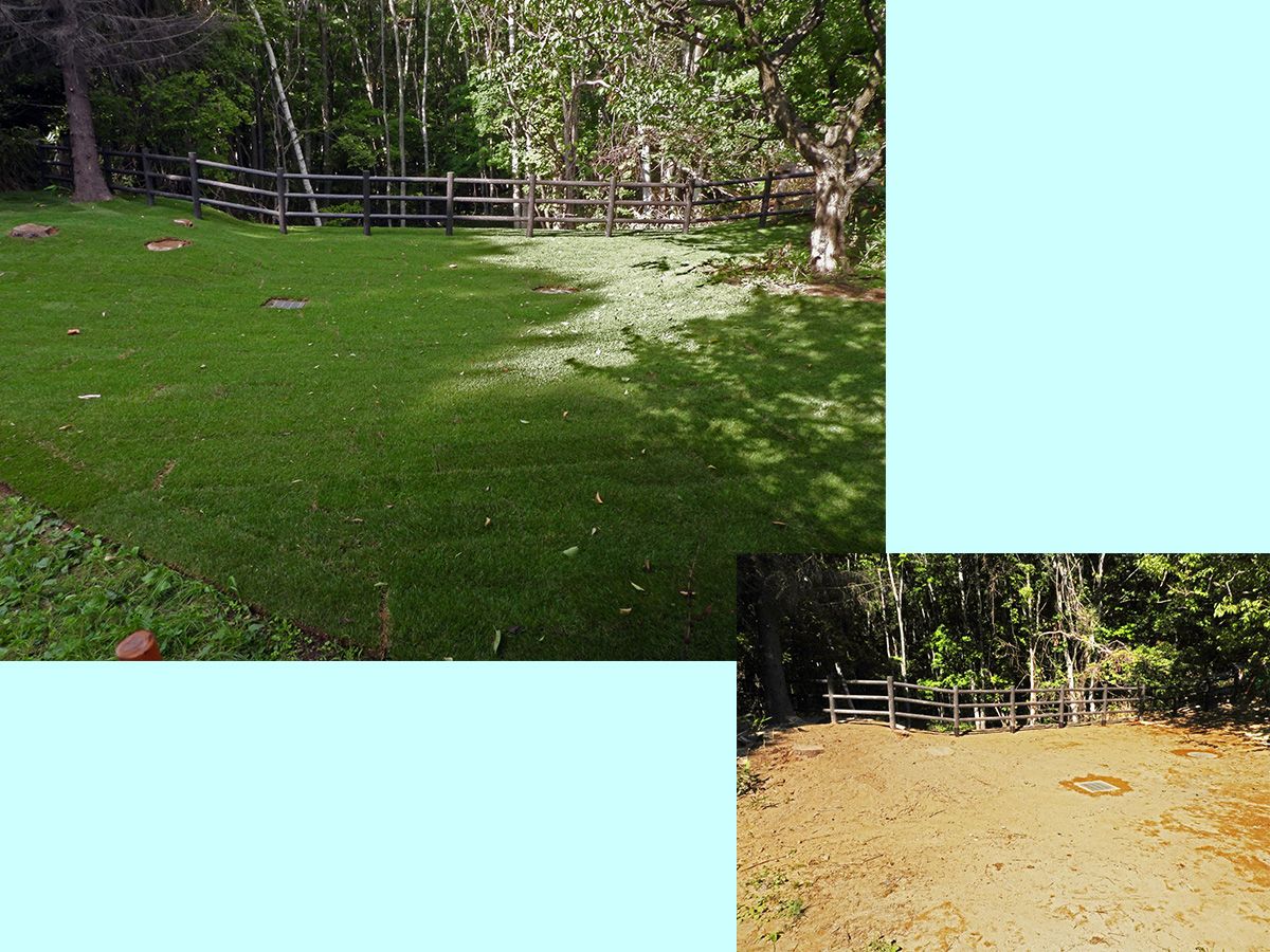 芝生面の再生用に使用するためと思われますが、この作業を見ても工事完了間近を感じさせます。