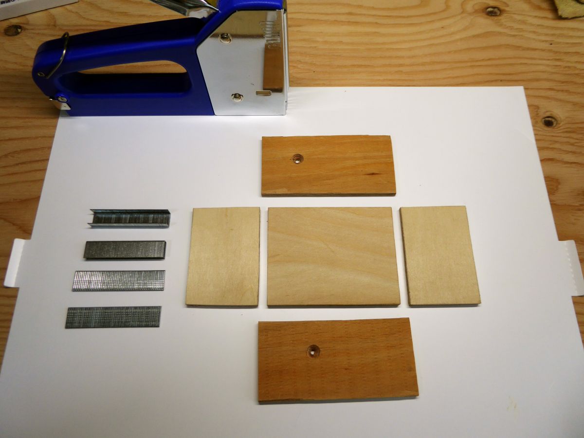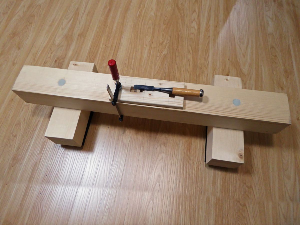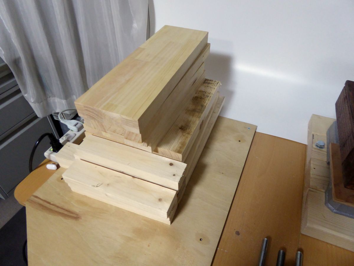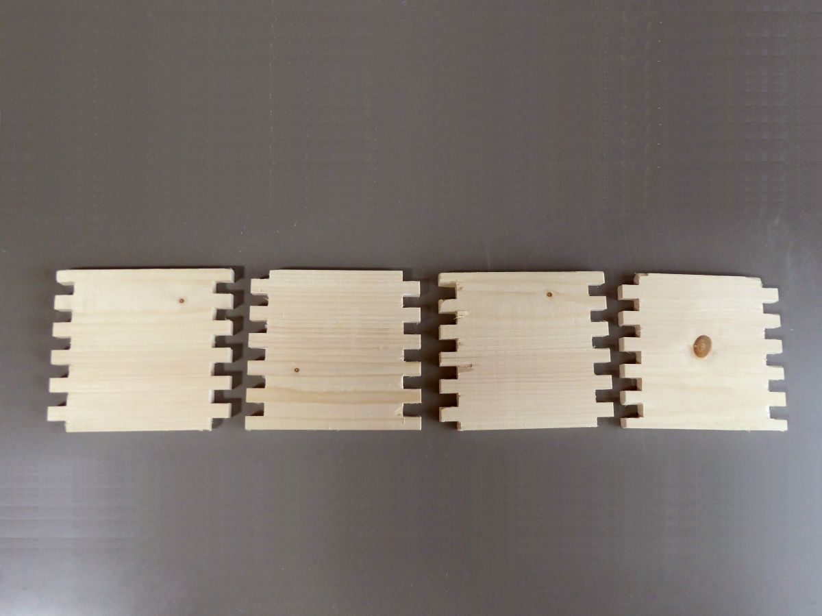 使用した木材は、以前にアラレ組みの練習用に100円ショップで購入した工作用の軟らかい木材です。