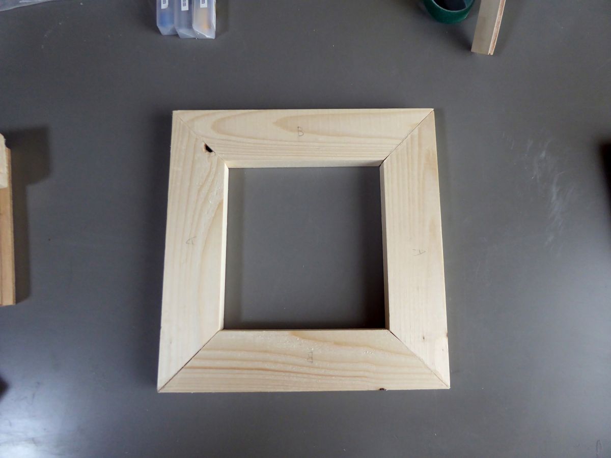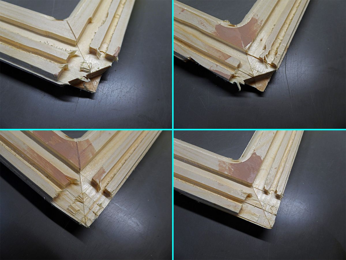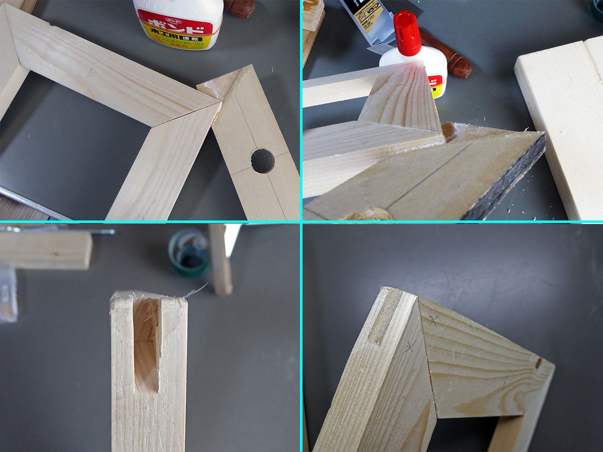木工用ボンドを塗って組み立てたあとで、木工用パテで補修をしてみました。(写真6)