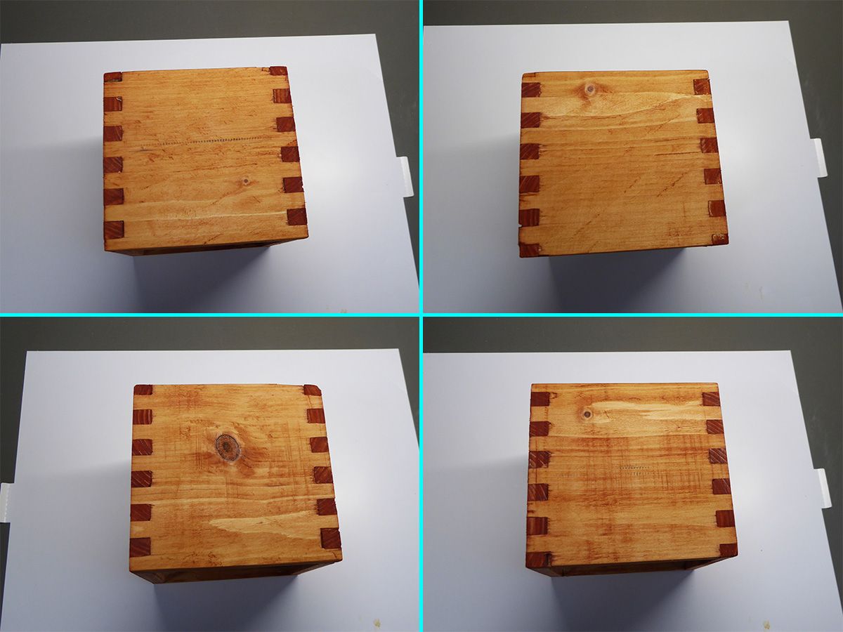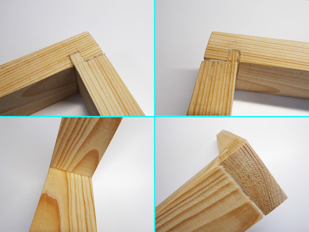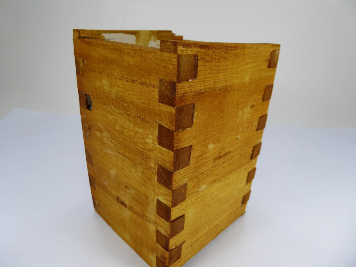 違いは、材料の正確な切断、木材の平滑化の度合い、側板に棚板を取り付ける場所の「大入れ組み手」の正確性などで、まだまだ練習をしないといけませんね。