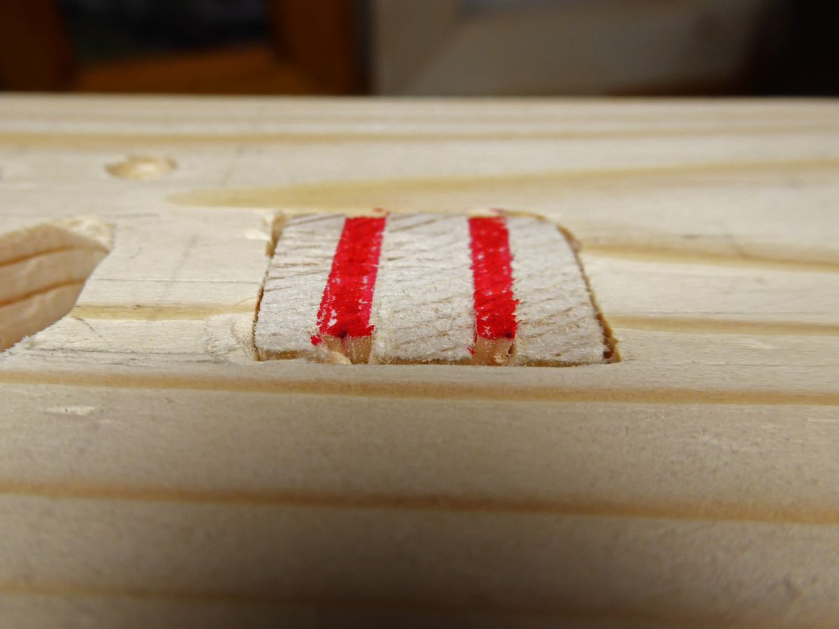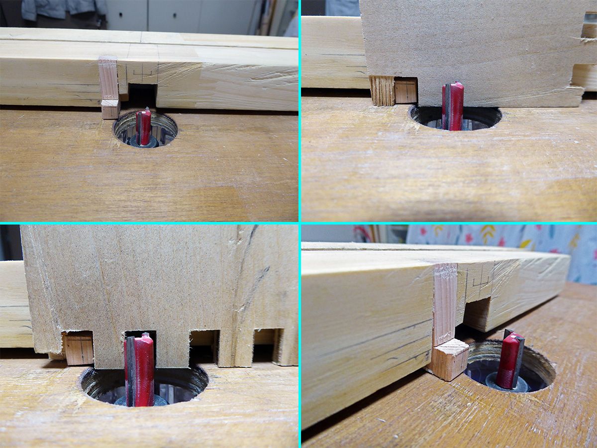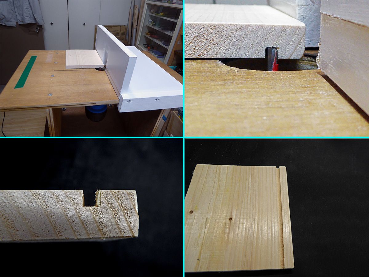 木材があまりにも軟らかいので、トリマーで溝を彫る作業で、木材の欠けが発生しています。
