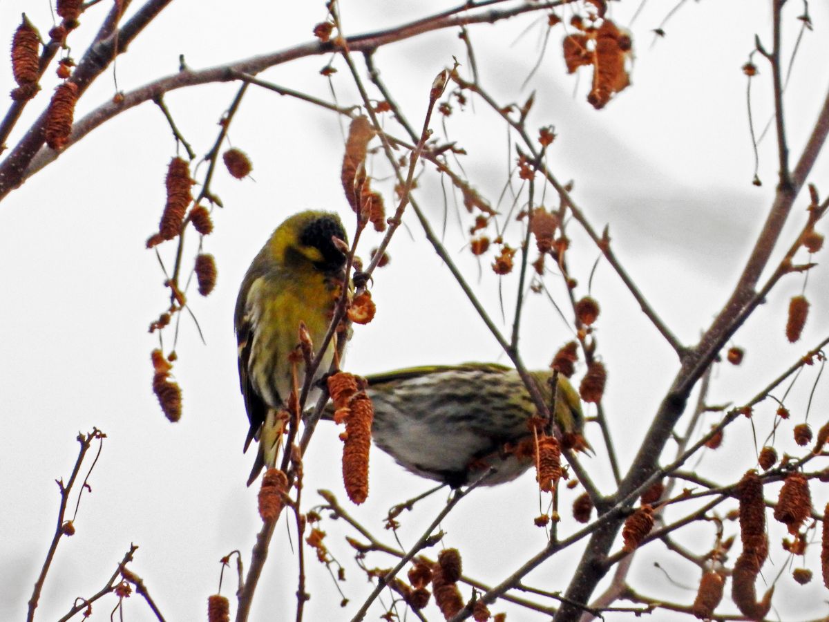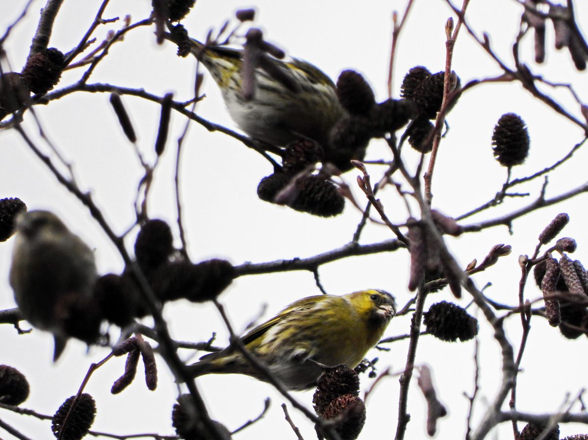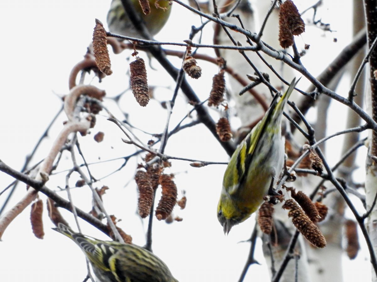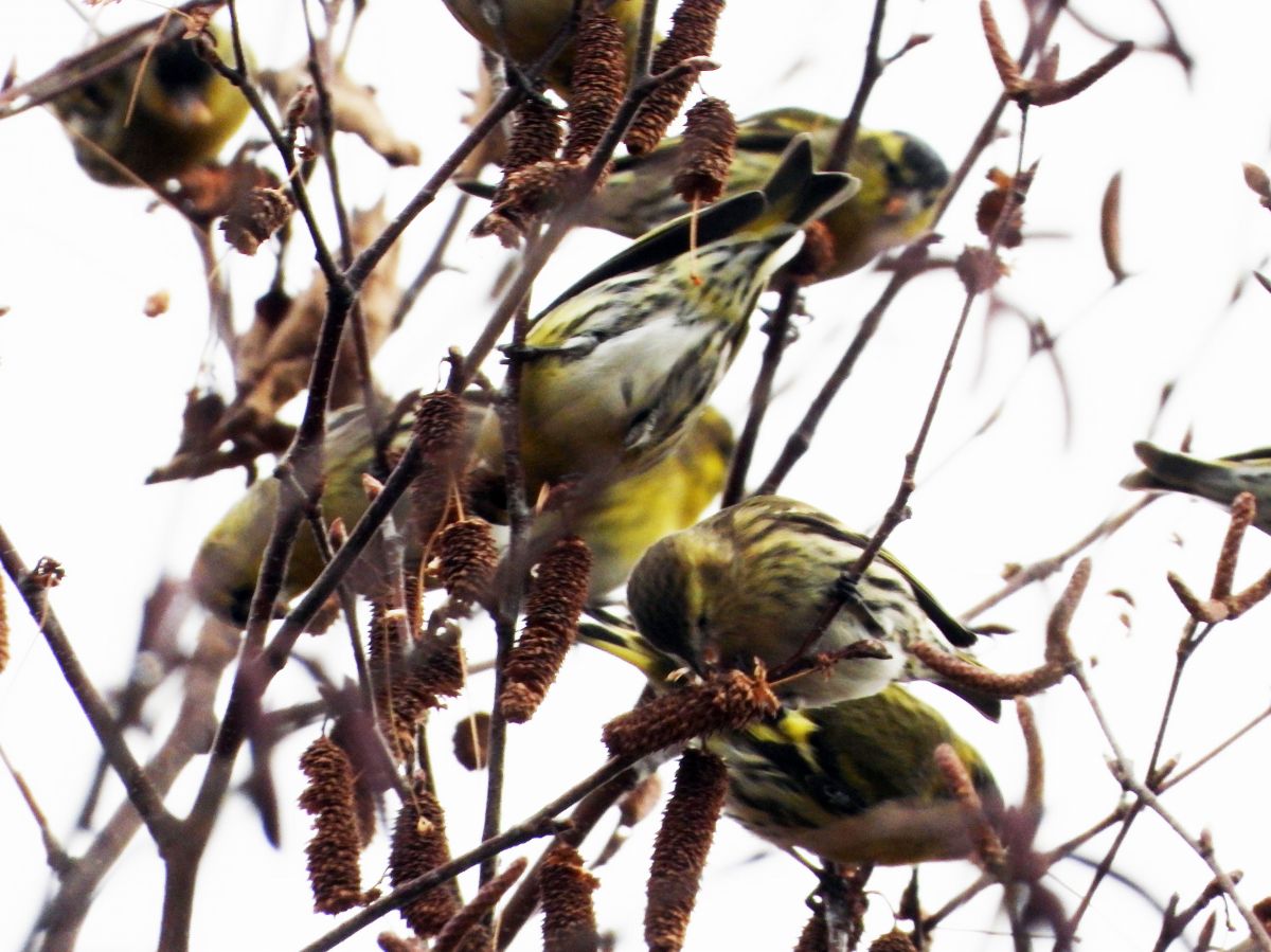 久しぶりに、マヒワの大きな群れが訪れていました。(写真4〜9)