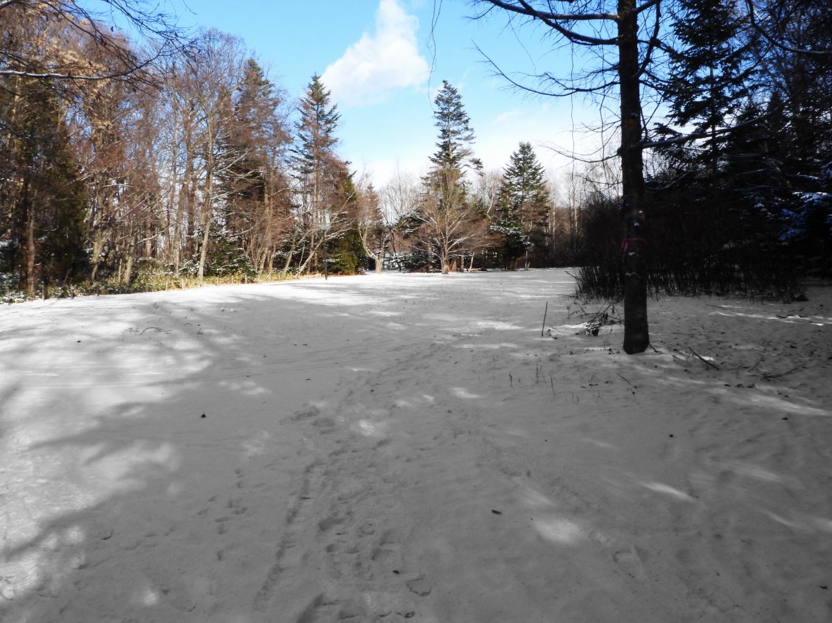 正面奥に向かっている踏み跡がキタキツネの