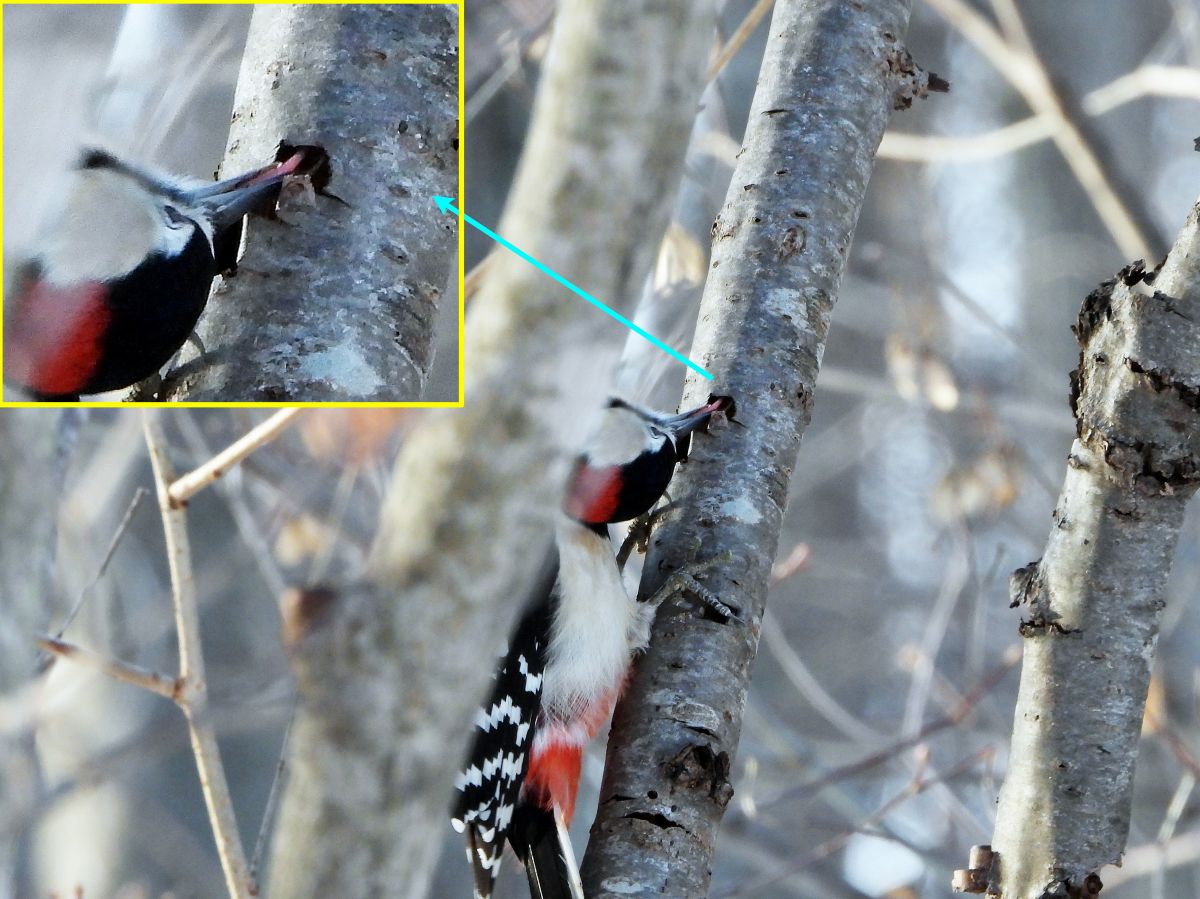 オオアカゲラとアカゲラがペアになって行動していました。(写真2〜4)