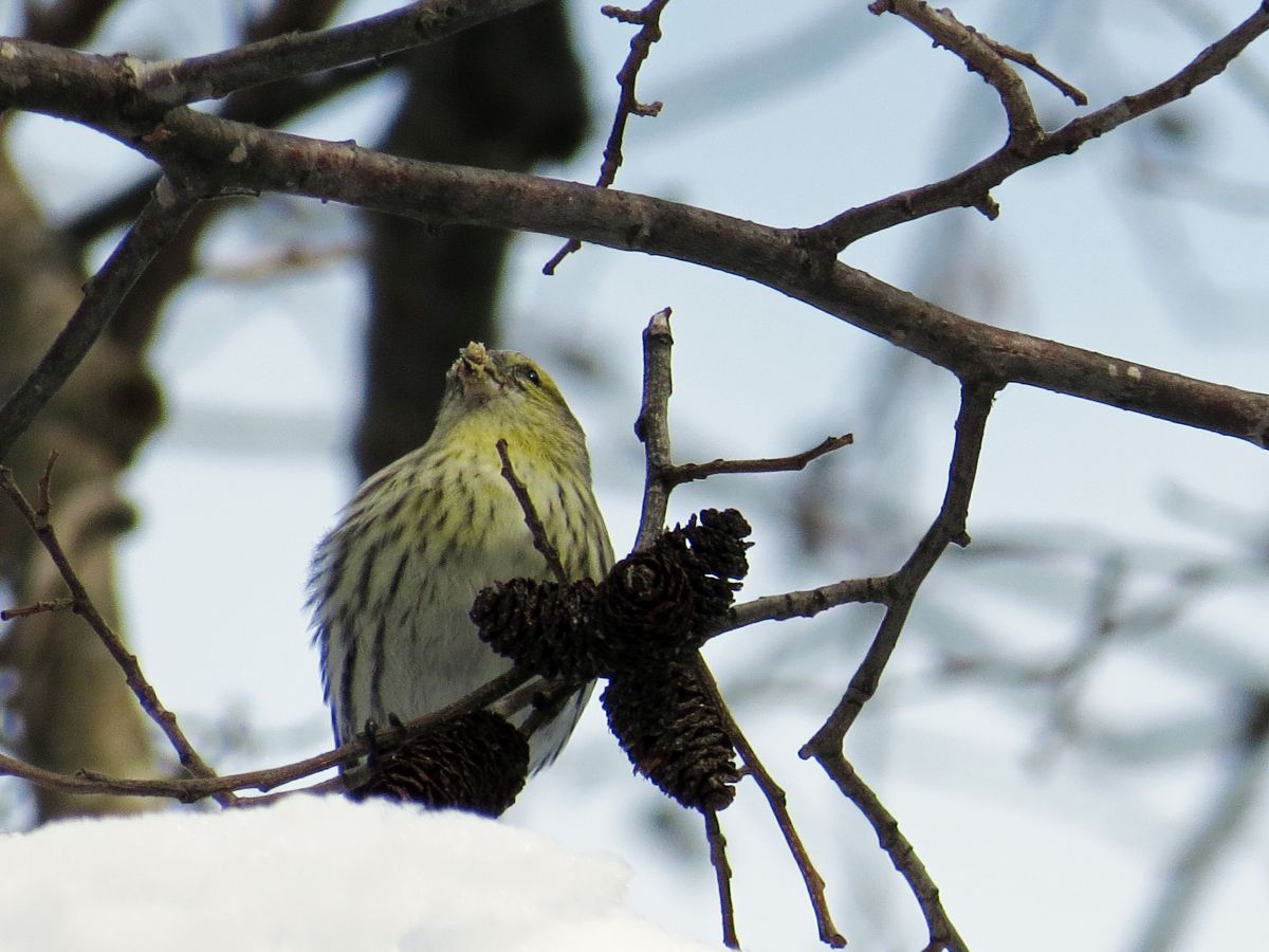 午前中降雪が続いていた影響のためか、カラス以外の野鳥の姿はありませんでした。