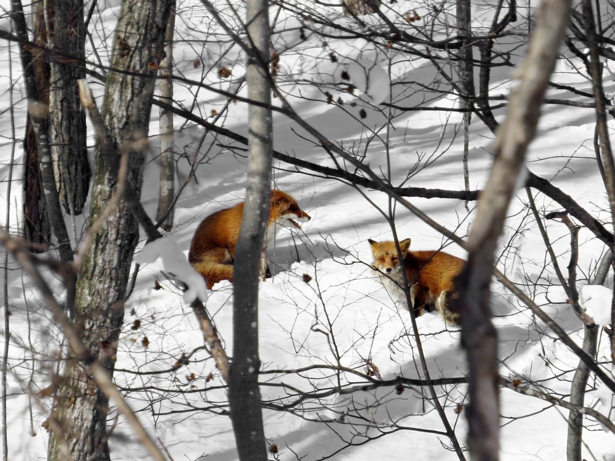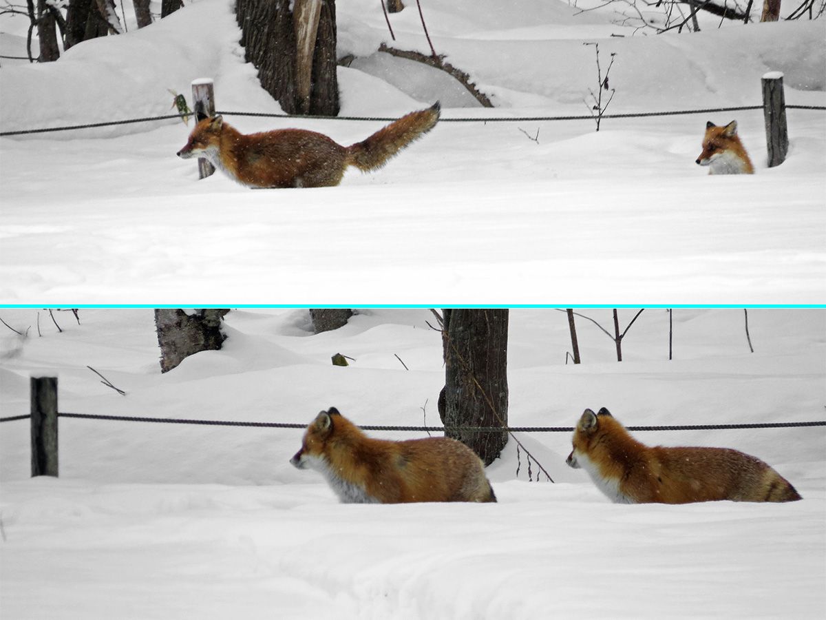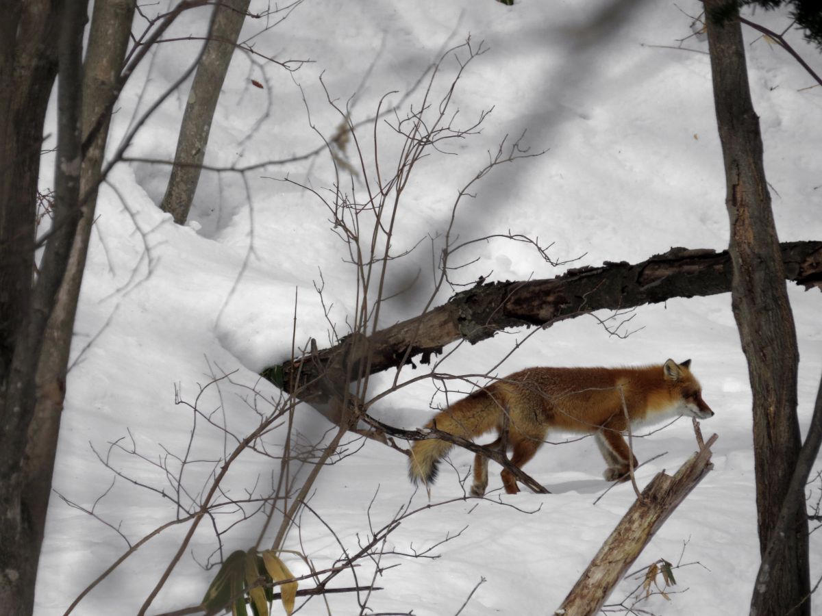 キタキツネは、この積雪の下から食料を探す必要がありますが、キタキツネはたくましいですね。