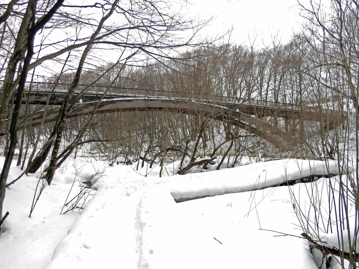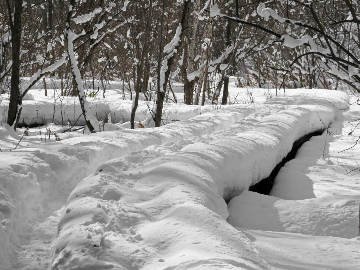 湿原の木道も、降雪直後なので、新雪で盛り上がっています。(写真4)