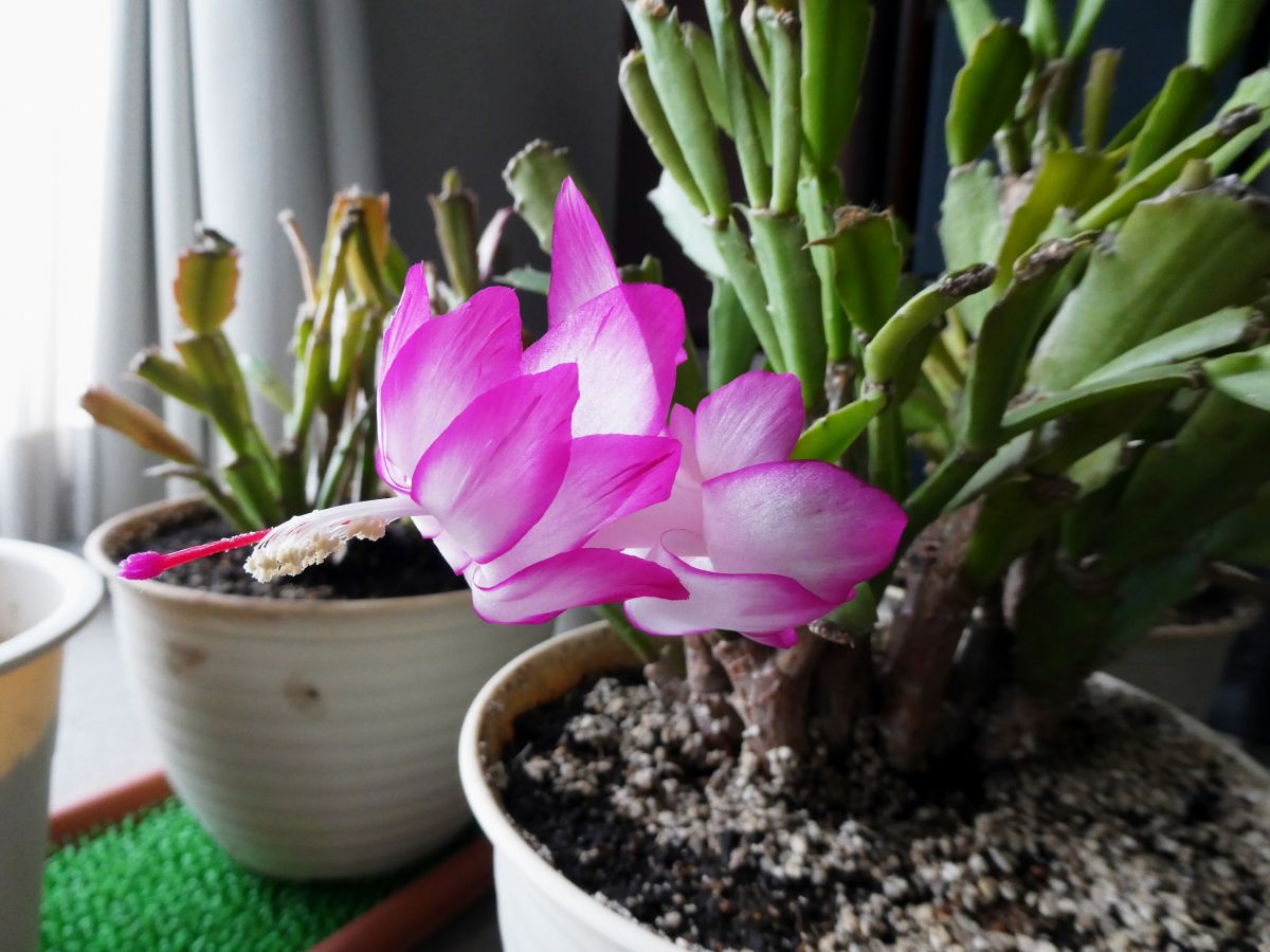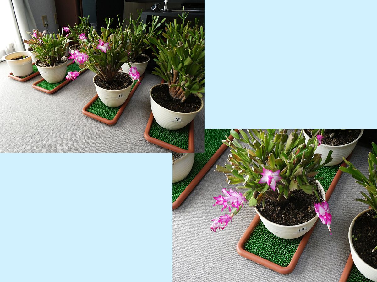 雪景色の写真ばかりでは寂しいので、自宅のシャコバサボテンの今日の様子をアップしました。(写真7〜9)